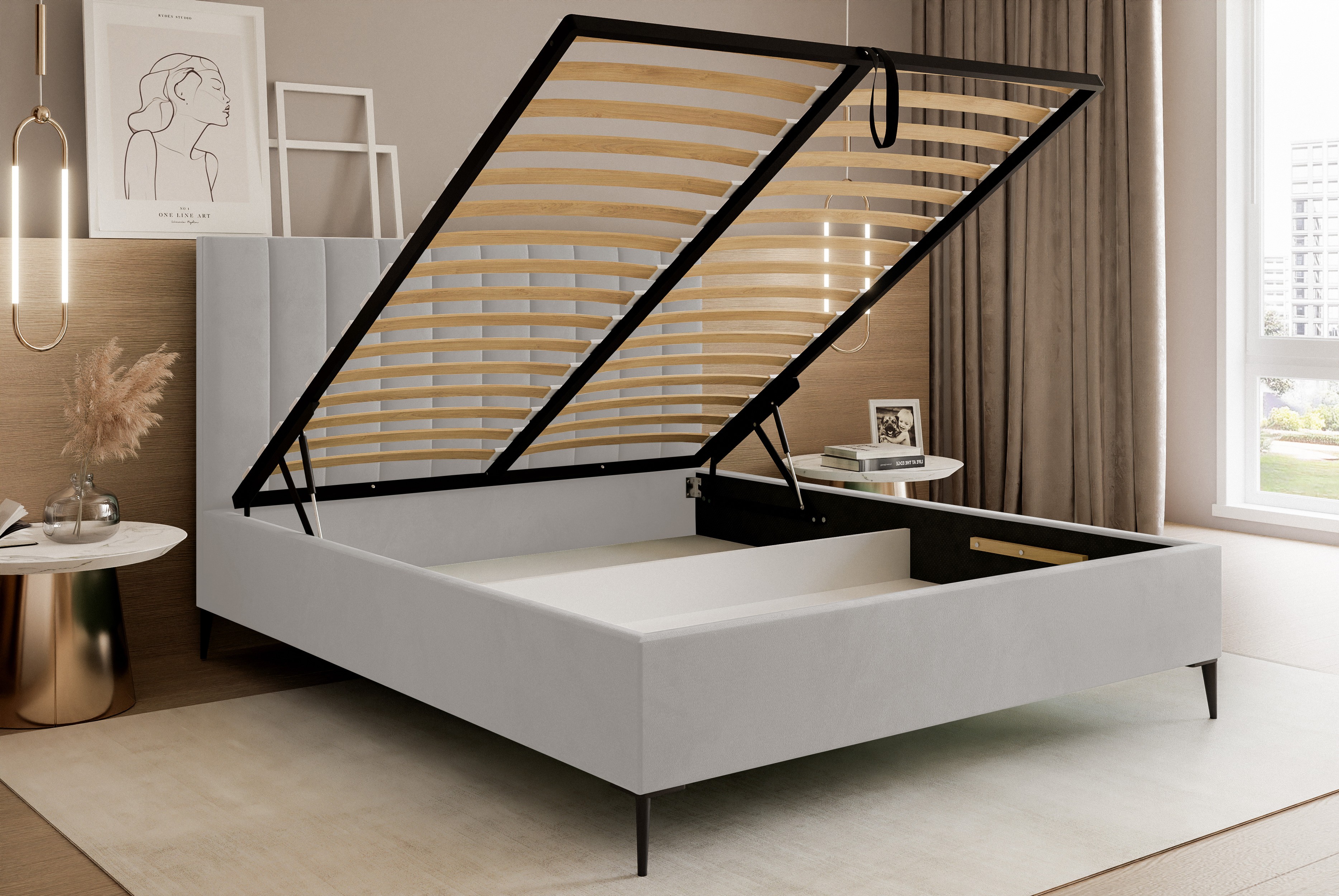 • Dwukomorowy pojemnik pod całym łóżkiem – więcej miejsca do przechowywania