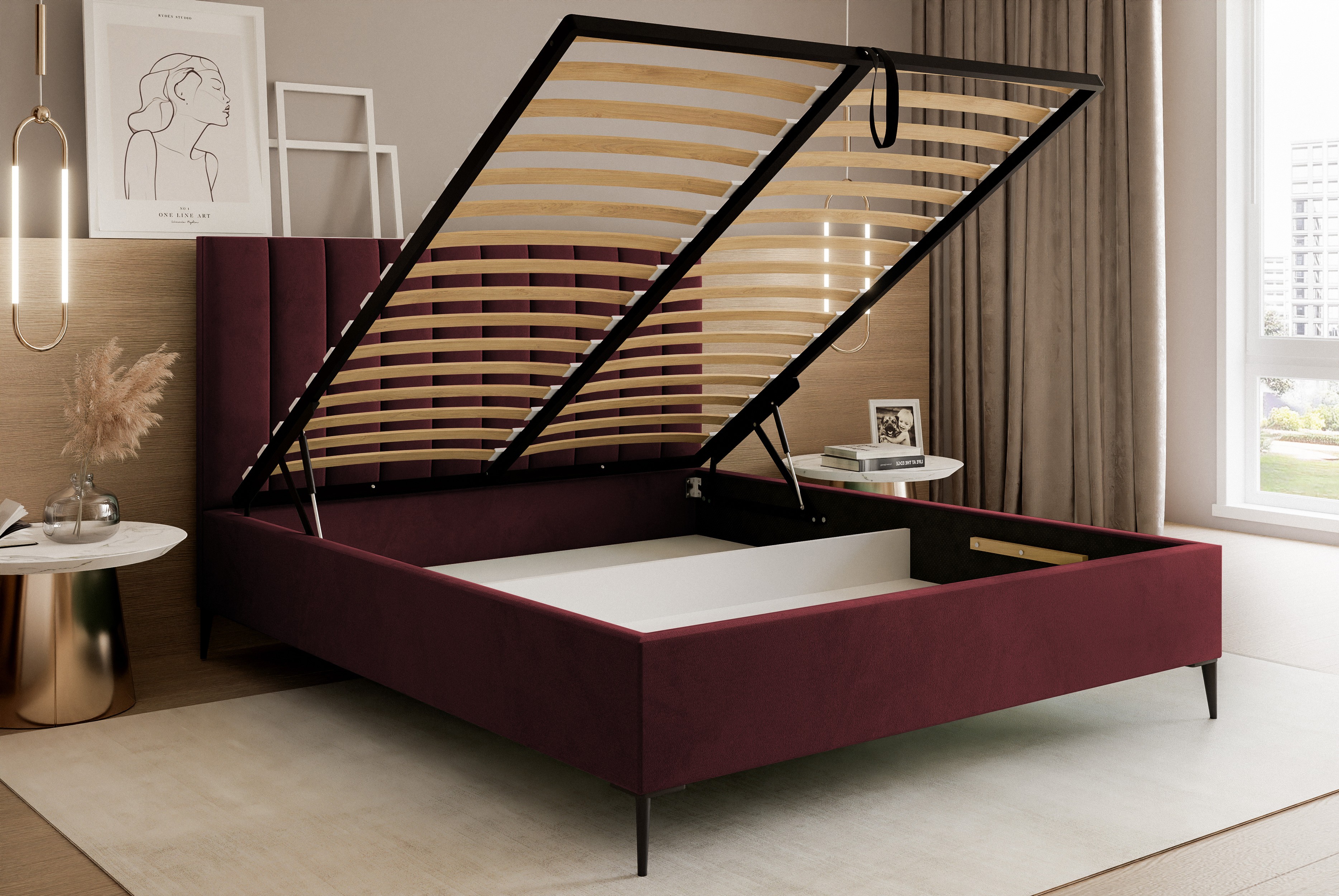 • Dwukomorowy pojemnik pod całym łóżkiem – więcej miejsca do przechowywania