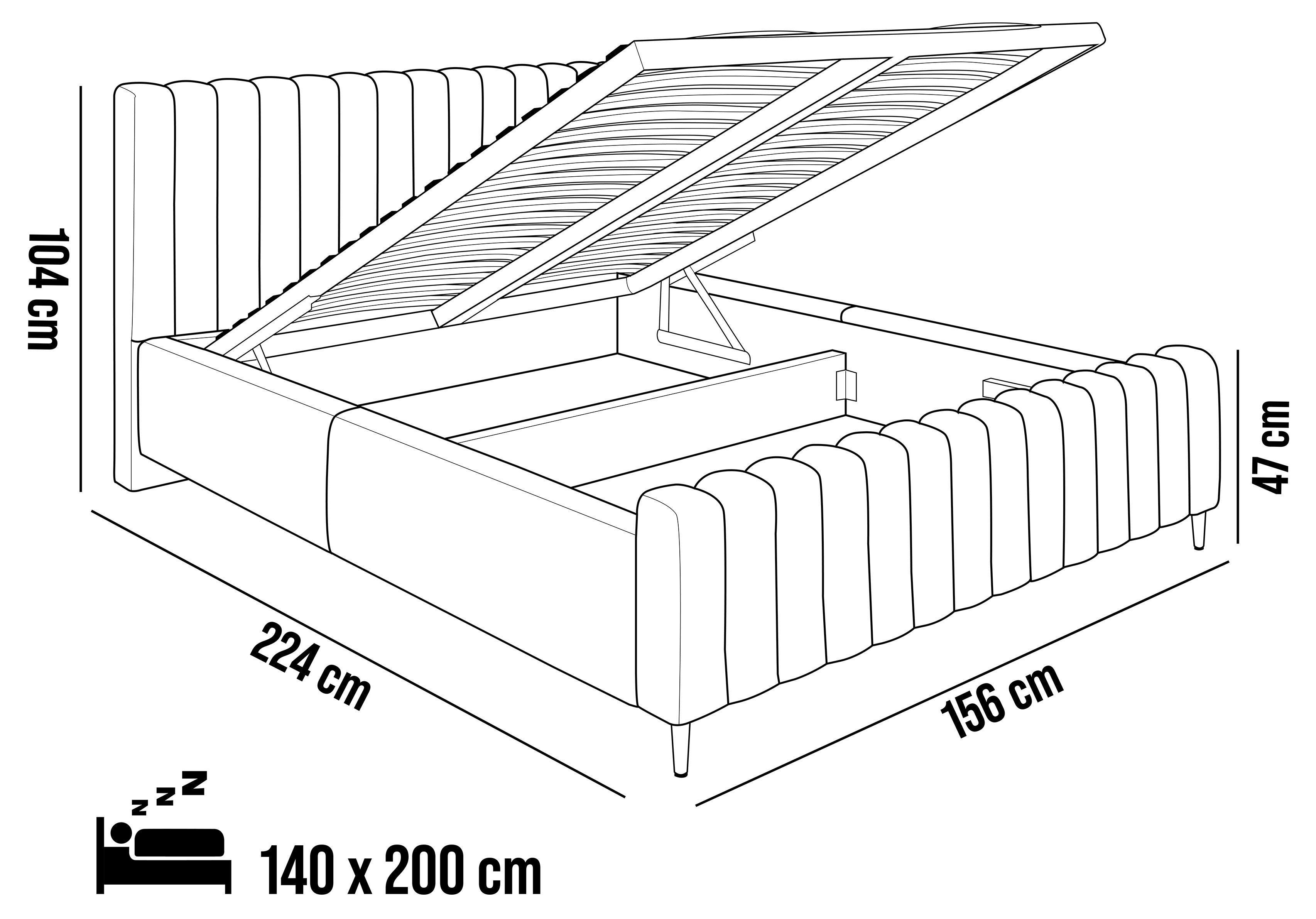 NOWOCZESNE ŁÓŻKO TAPICEROWANE LUX 140x200 Z POJEMNIKIEM I WYSOKIM ZAGŁÓWKIEM