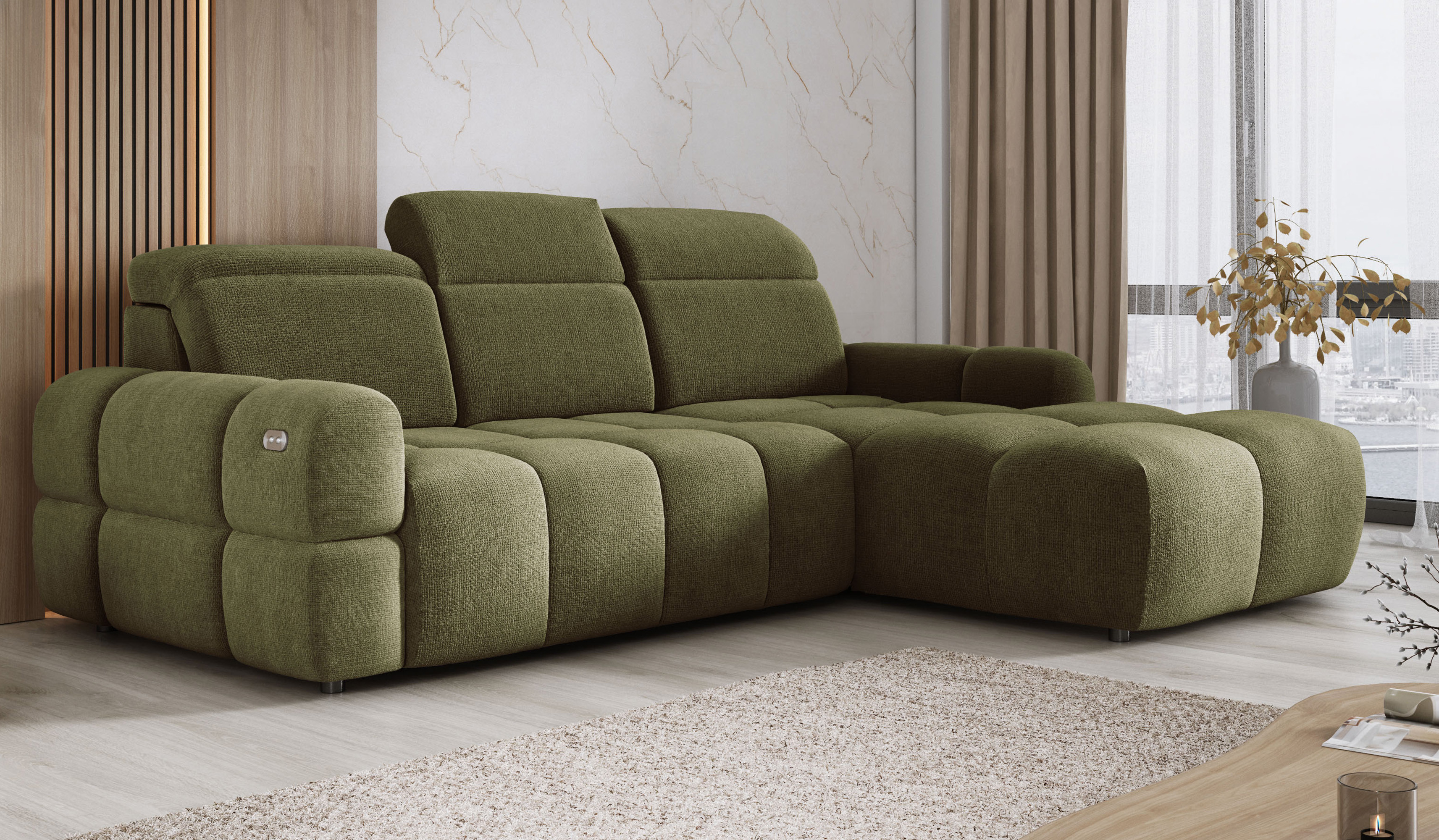 • Nowoczesny kształt litery L – idealny do salonów, apartamentów, loftów