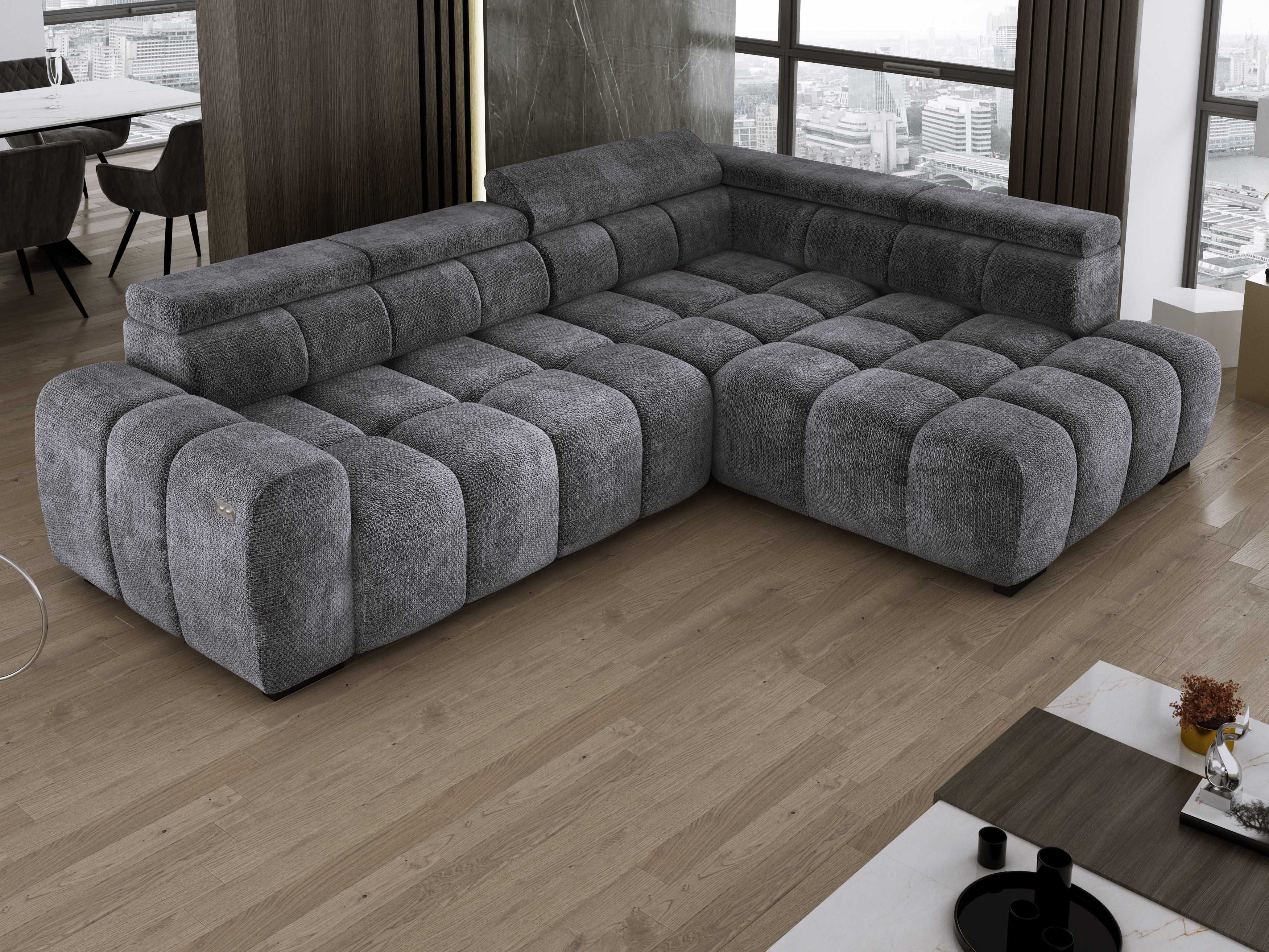 Ta elegancka sofa narożna łączy stylowy wygląd z wyjątkową wygodą. Wysokiej jakości tkanina strukturalna w modnym odcieniu dodaje salonowi nowoczesnego charakteru i zapewnia przyjemne wrażenia podczas siedzenia – idealna do każdego współczesnego wnętrza.