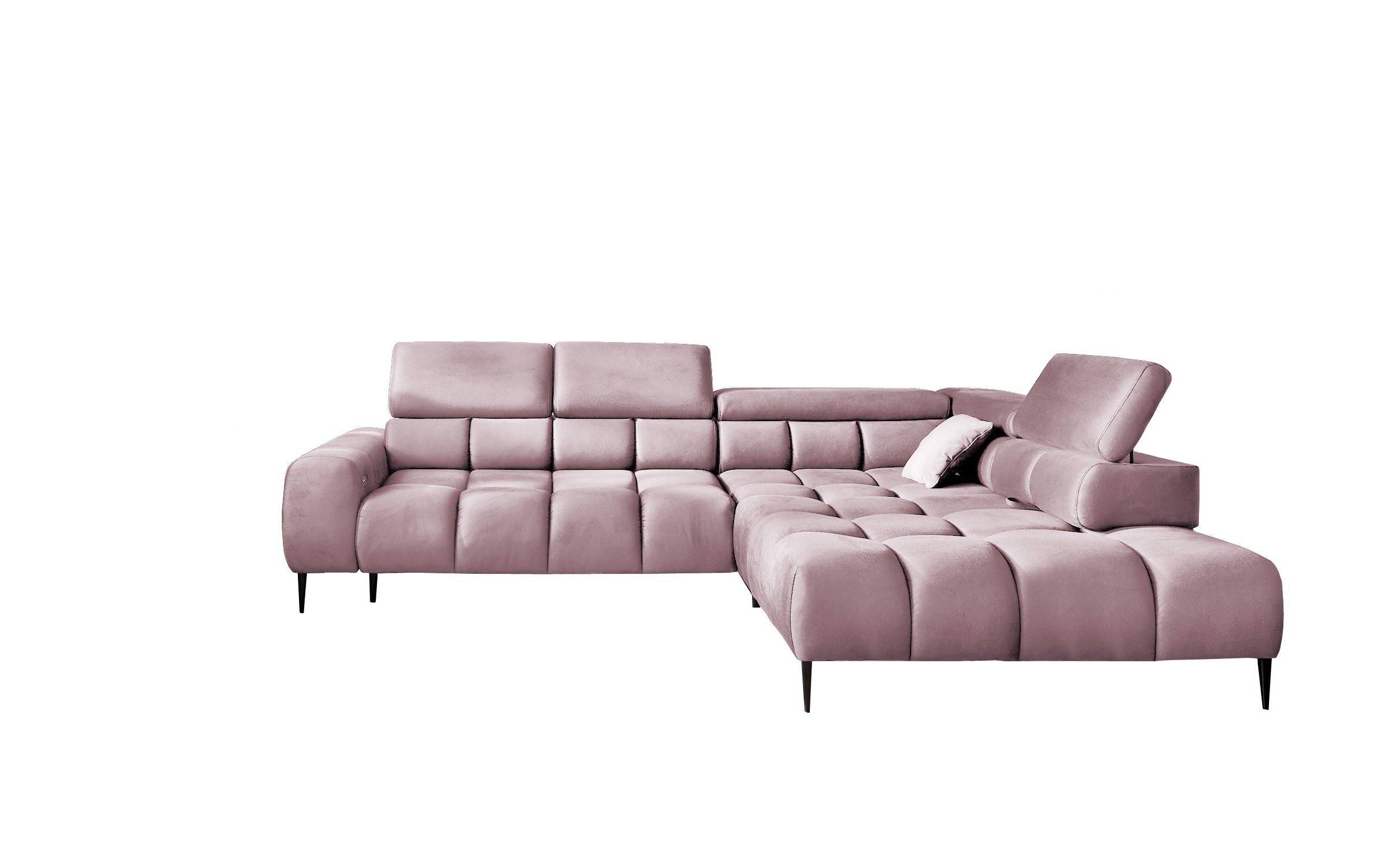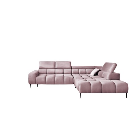 Stylowe pikowane siedzisko i wysokie metalowe nóżki (dostępne w kolorze czarnym lub złotym) nadają narożnikowi lekko loftowy, a jednocześnie nowoczesny charakter.