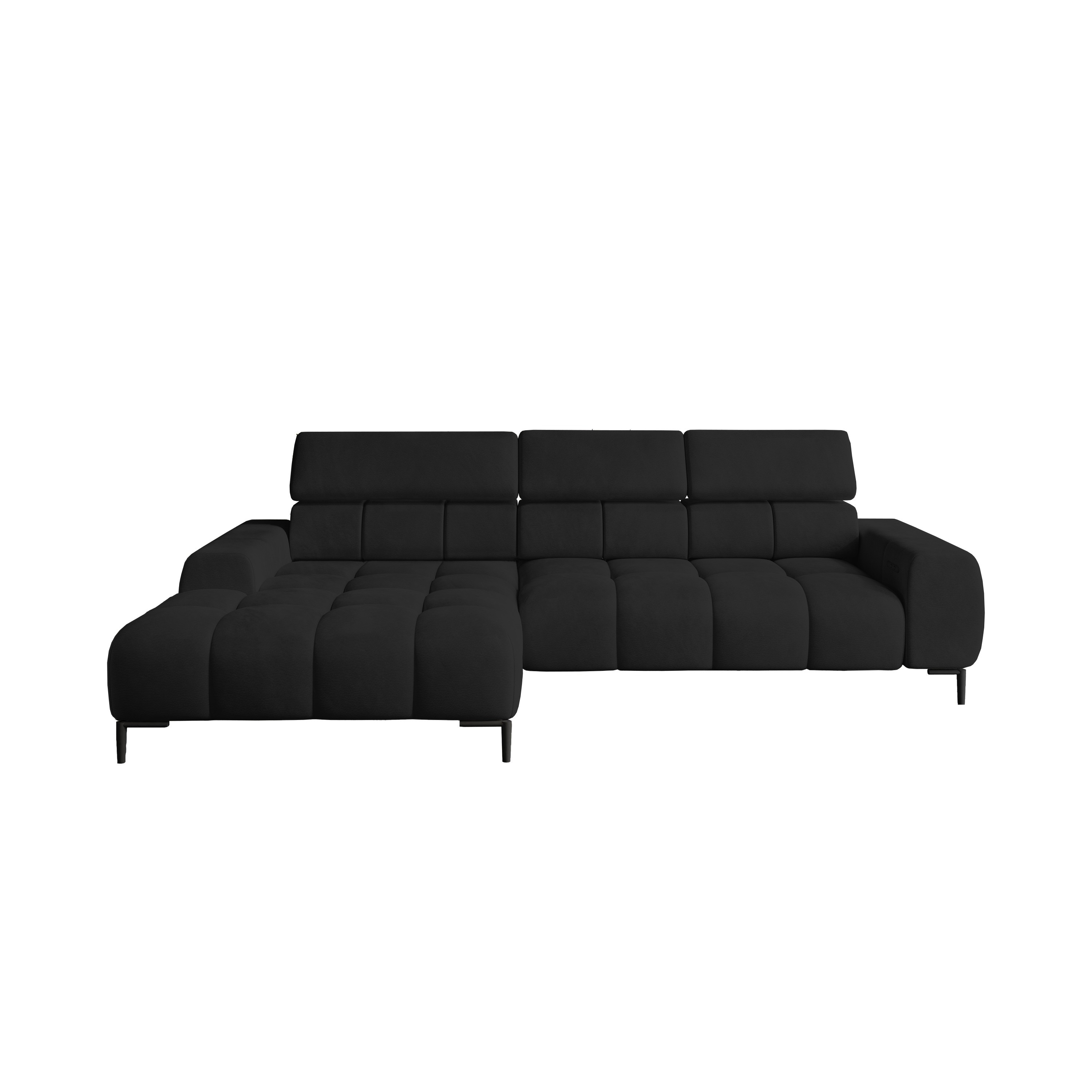 Pikowane siedzisko nadaje narożnikowi nowoczesnego charakteru, a wysokie metalowe nóżki (czarne lub złote) w stylu loftowym dodają mu lekkości i elegancji.