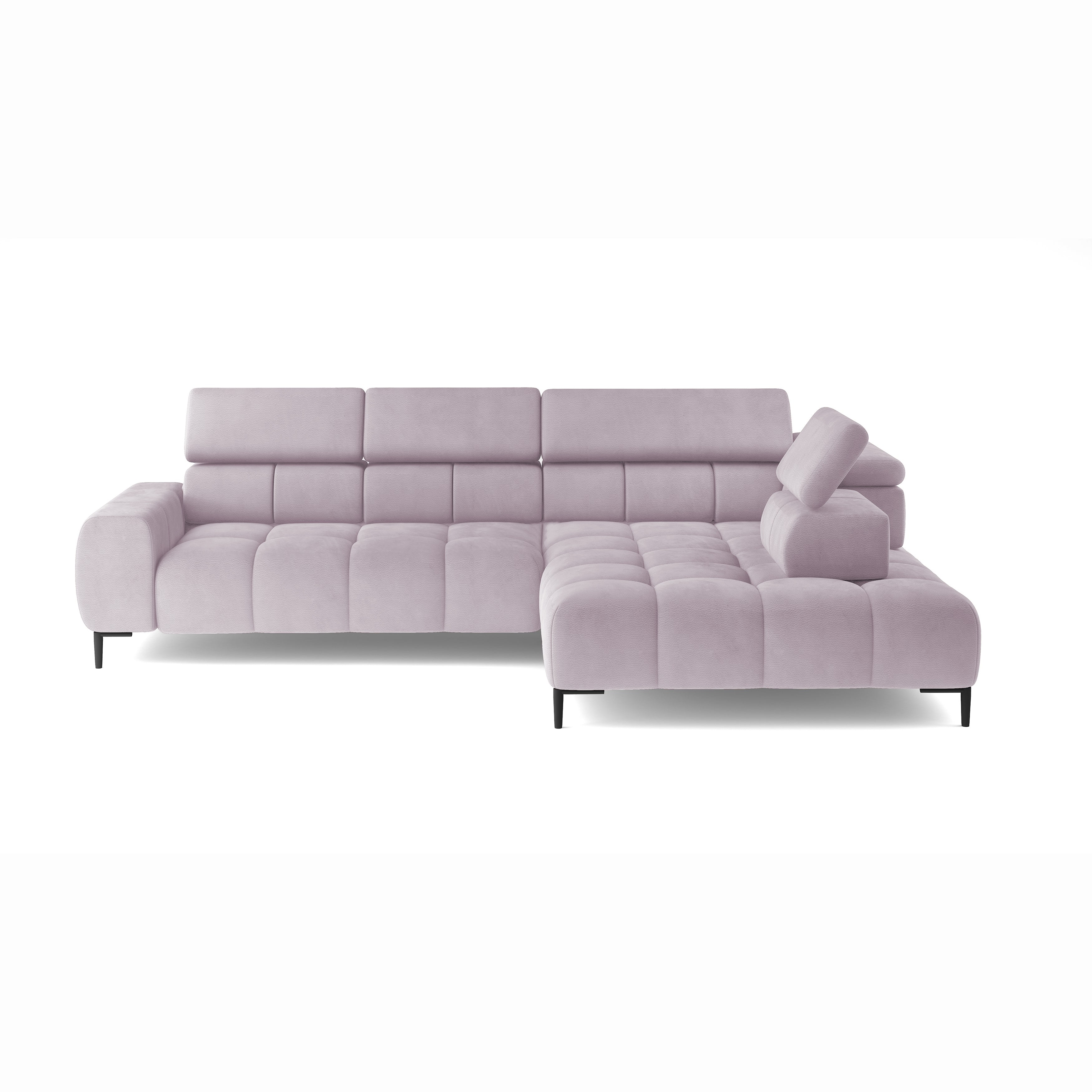 Stylowe pikowane siedzisko i wysokie metalowe nóżki (dostępne w kolorze czarnym lub złotym) nadają narożnikowi lekko loftowy, a jednocześnie nowoczesny charakter.