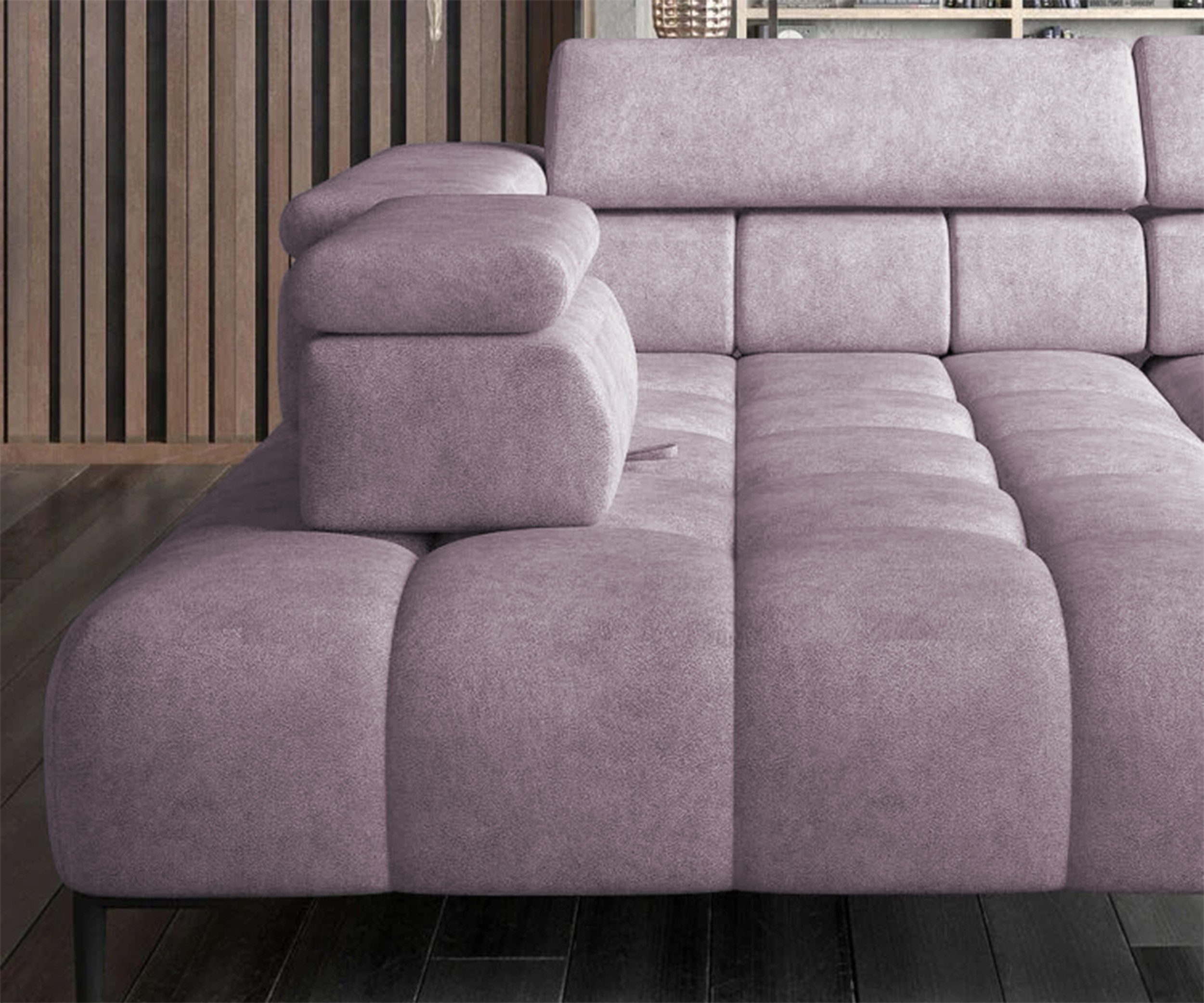 Dodatkowo narożnik wyposażony jest w przesuwne oparcie oraz regulowane zagłówki (5 sztuk), które można zablokować w wybranej pozycji, zapewniając jeszcze większy komfort.