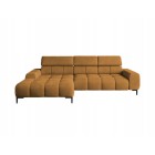 Pikowane siedzisko nadaje narożnikowi nowoczesnego charakteru, a wysokie metalowe nóżki (czarne lub złote) w stylu loftowym dodają mu lekkości i elegancji.