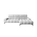 Pikowane siedzisko nadaje narożnikowi nowoczesnego charakteru, a wysokie metalowe nóżki (czarne lub złote) w stylu loftowym dodają mu lekkości i elegancji.