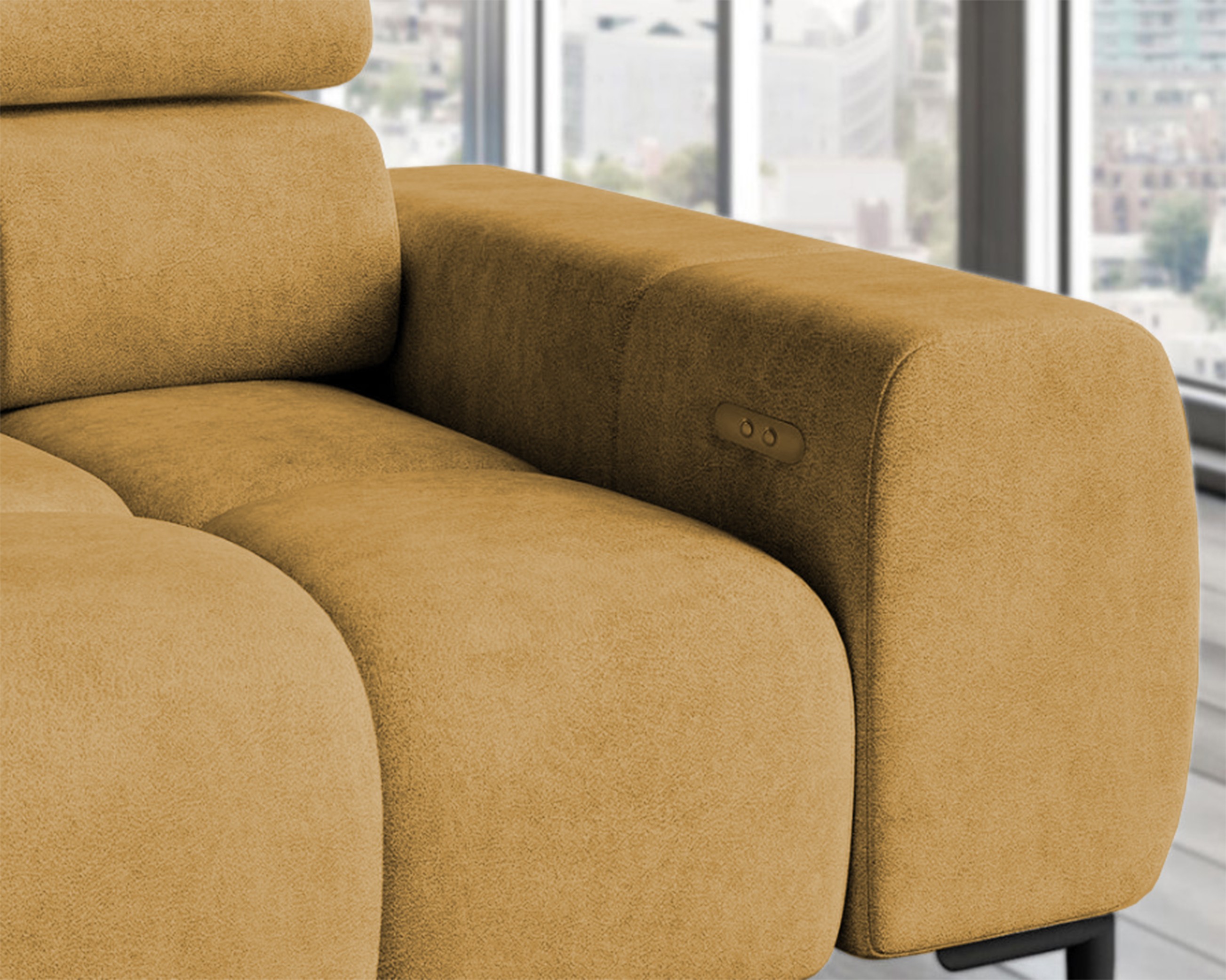 Stylowe pikowane siedzisko i wysokie metalowe nóżki (dostępne w kolorze czarnym lub złotym) nadają narożnikowi lekko loftowy, a jednocześnie nowoczesny charakter.