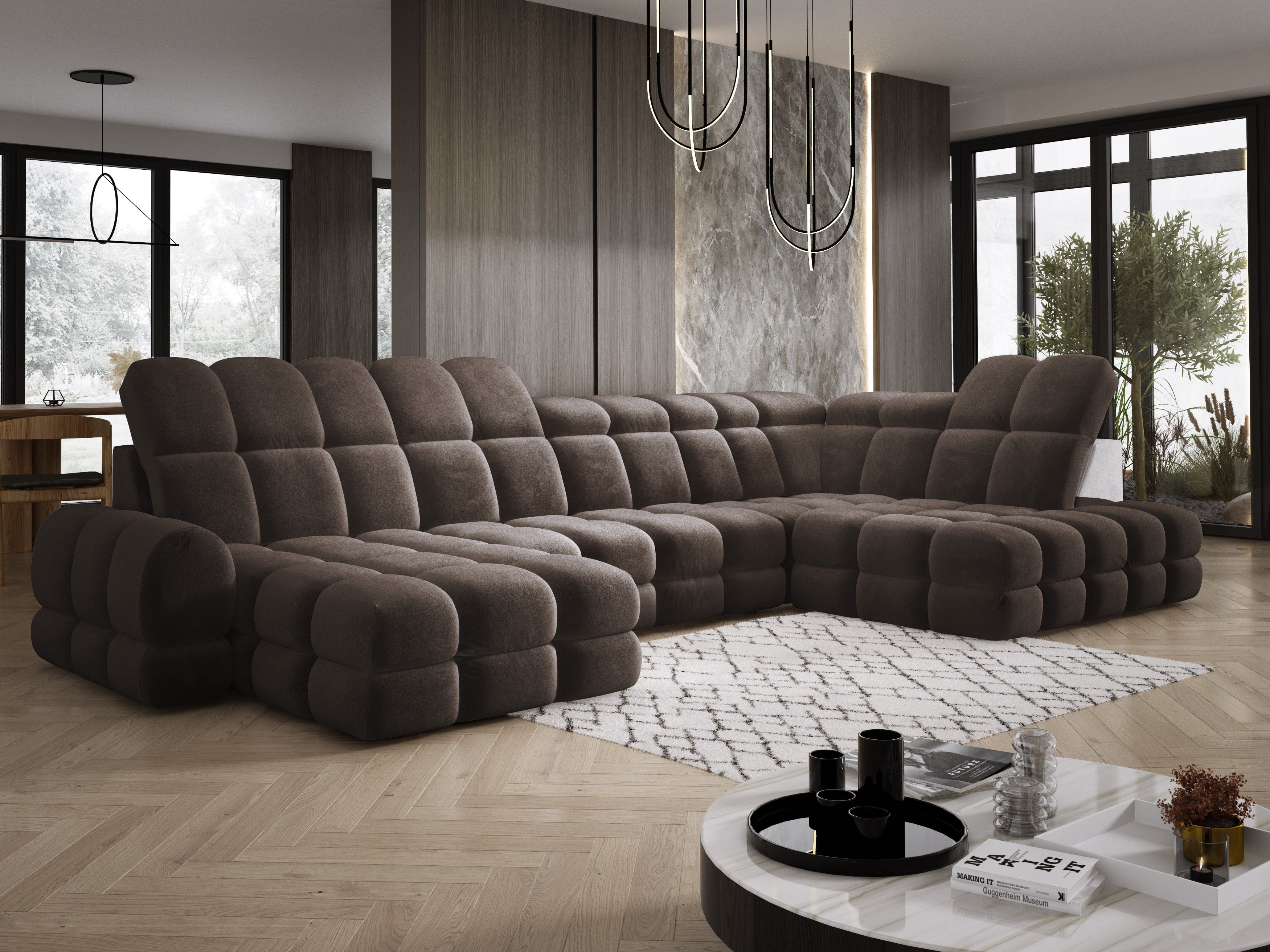 Jego minimalistyczny design, inspirowany współczesnymi trendami, podkreśla geometryczna bryła, miękkie linie podłokietników i precyzyjne przeszycia siedziska.