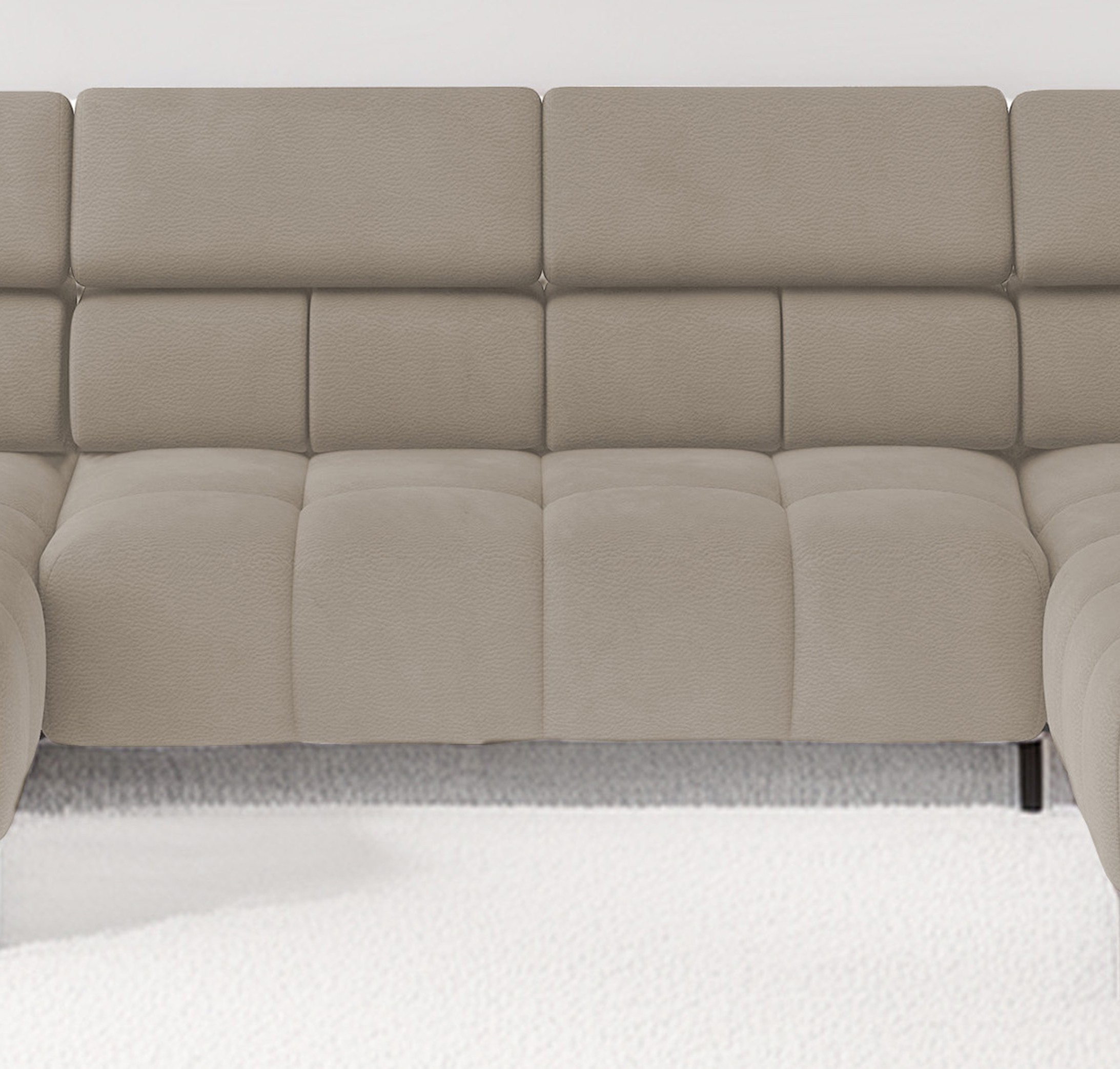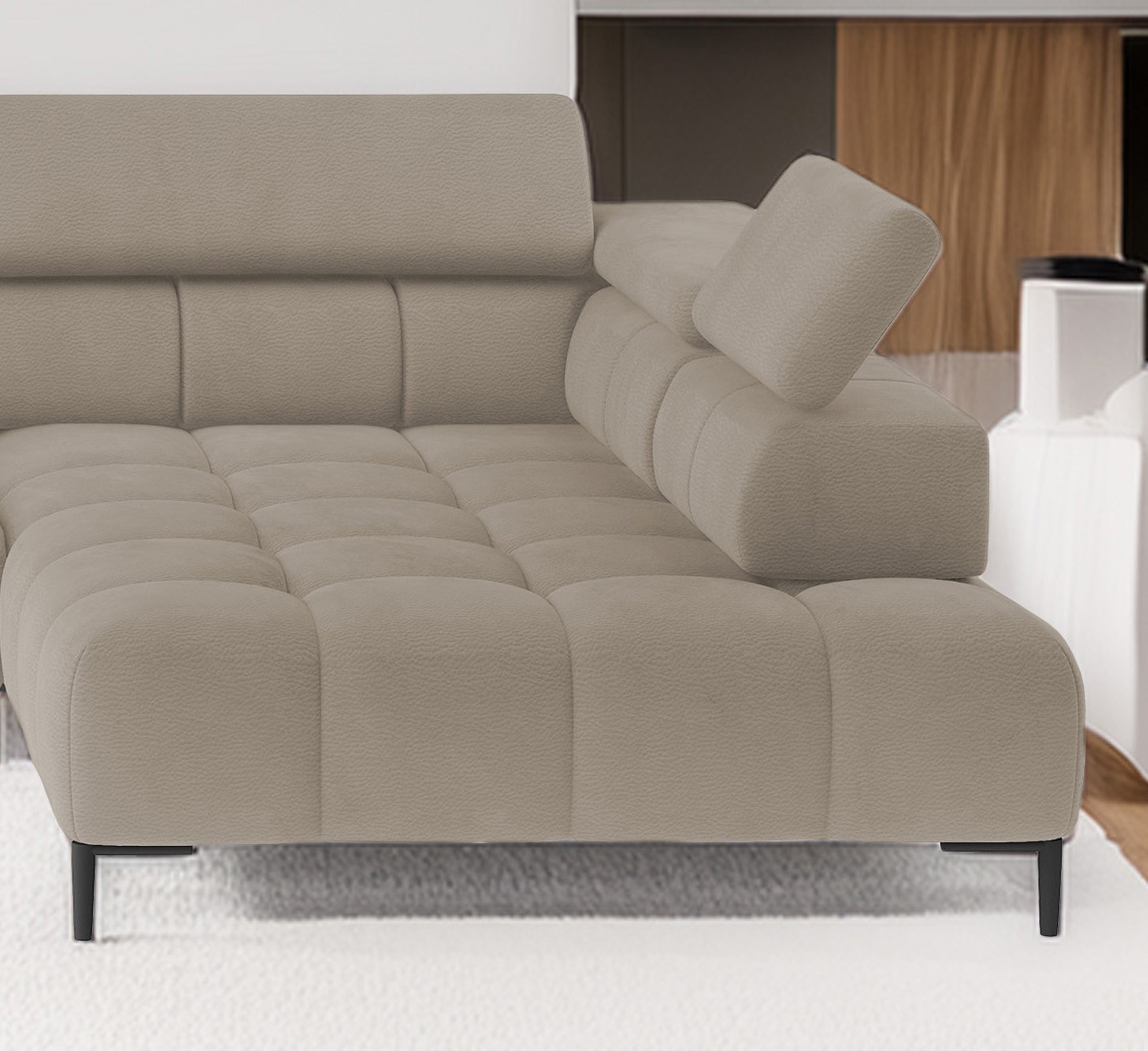 Dodatkowo narożnik wyposażony jest w przesuwne oparcie oraz 6 regulowanych zagłówków z możliwością blokady w dowolnej pozycji.