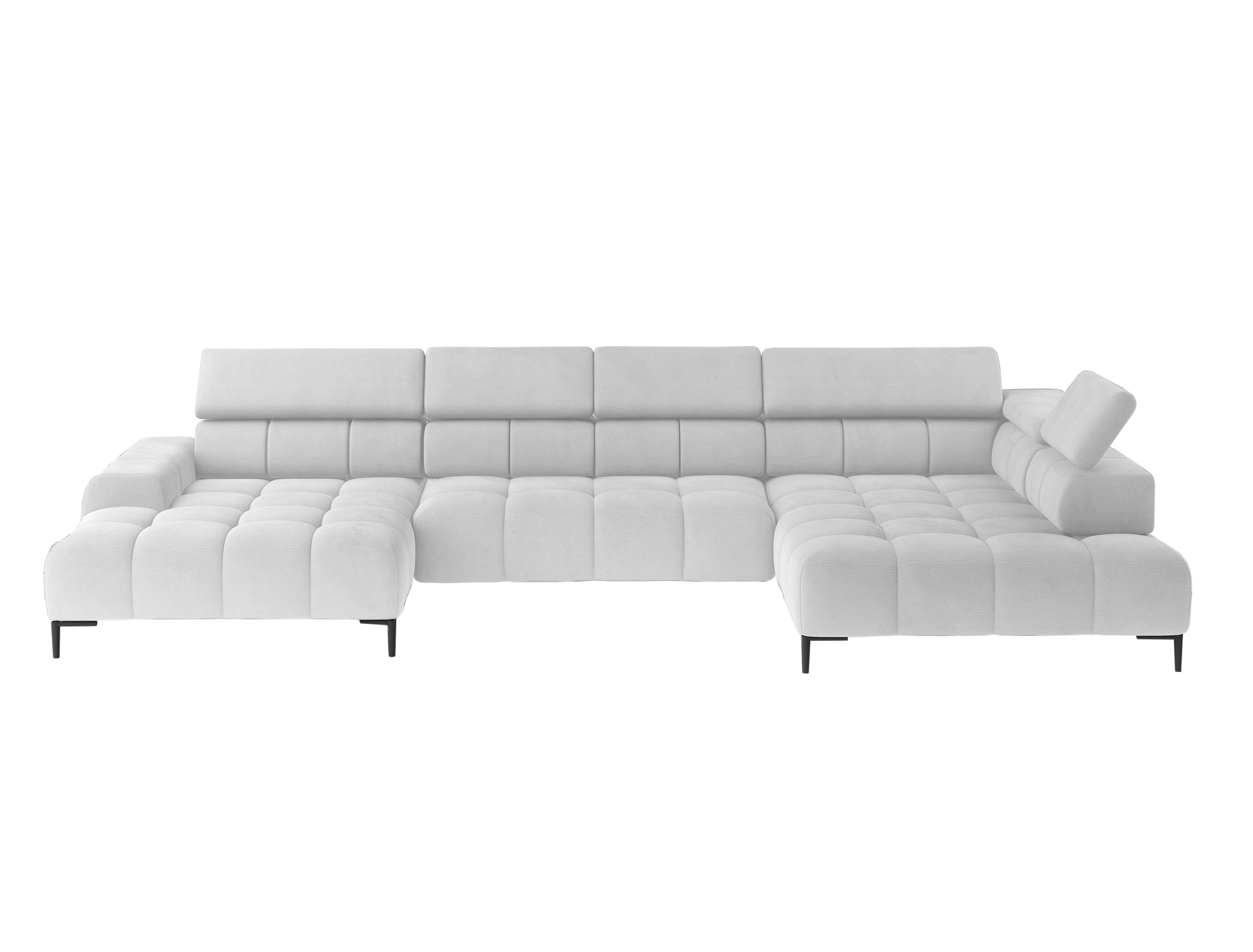 Dodatkowo narożnik wyposażony jest w przesuwne oparcie oraz 6 regulowanych zagłówków z możliwością blokady w dowolnej pozycji.