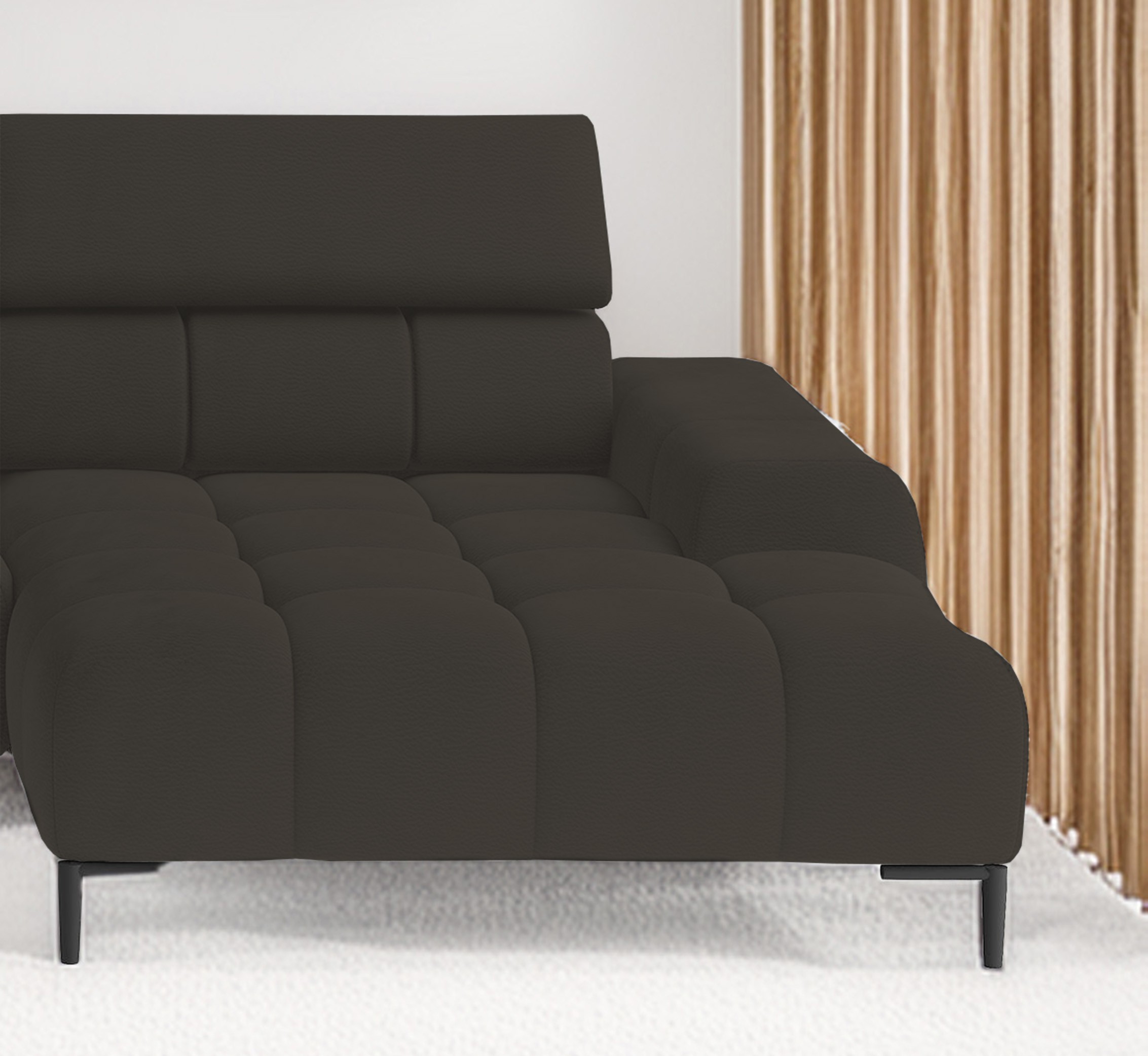 Charakterystycznym elementem tego modelu jest elektrycznie regulowane siedzisko, które pozwala zwiększyć głębokość z 62 do aż 88 cm – zapewniając wyjątkowy komfort wypoczynku.