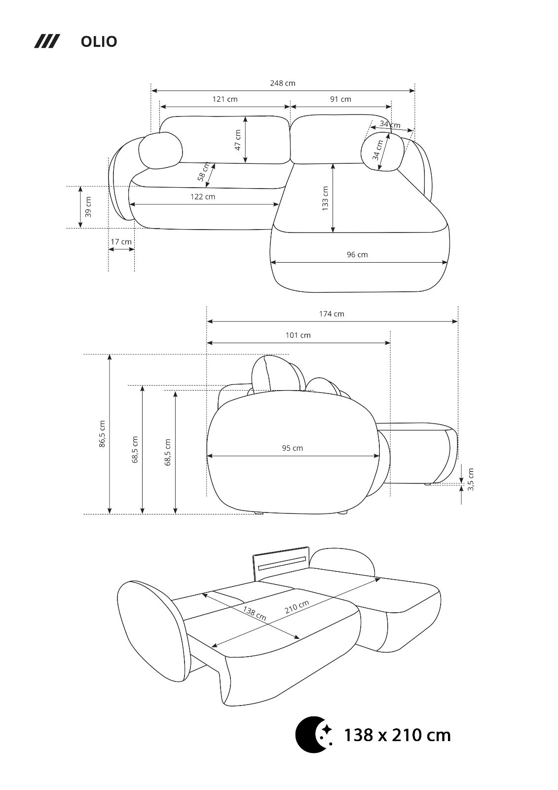 • Wolnostojący – tył narożnika obity tkaniną, idealny do ustawienia na środku pomieszczenia,