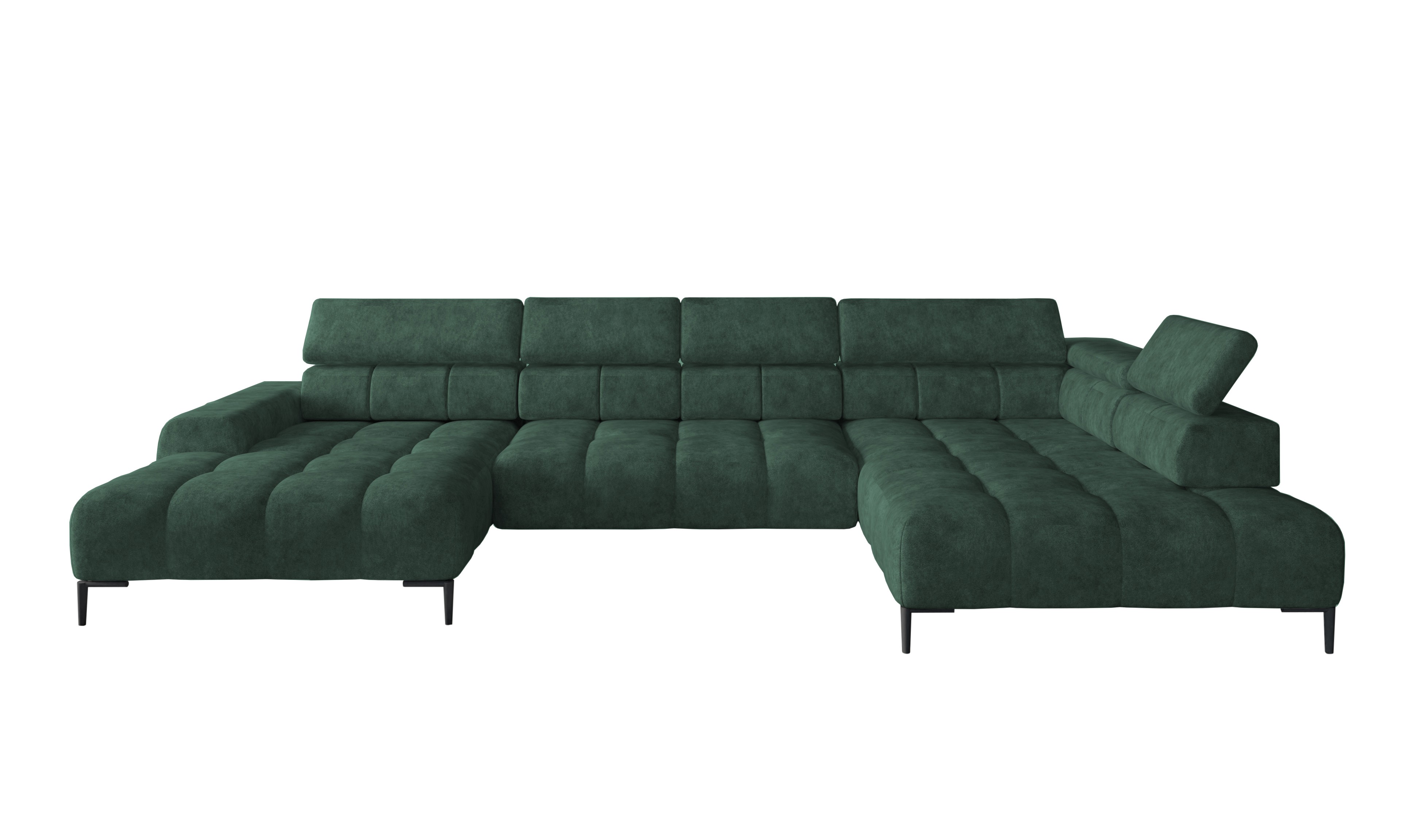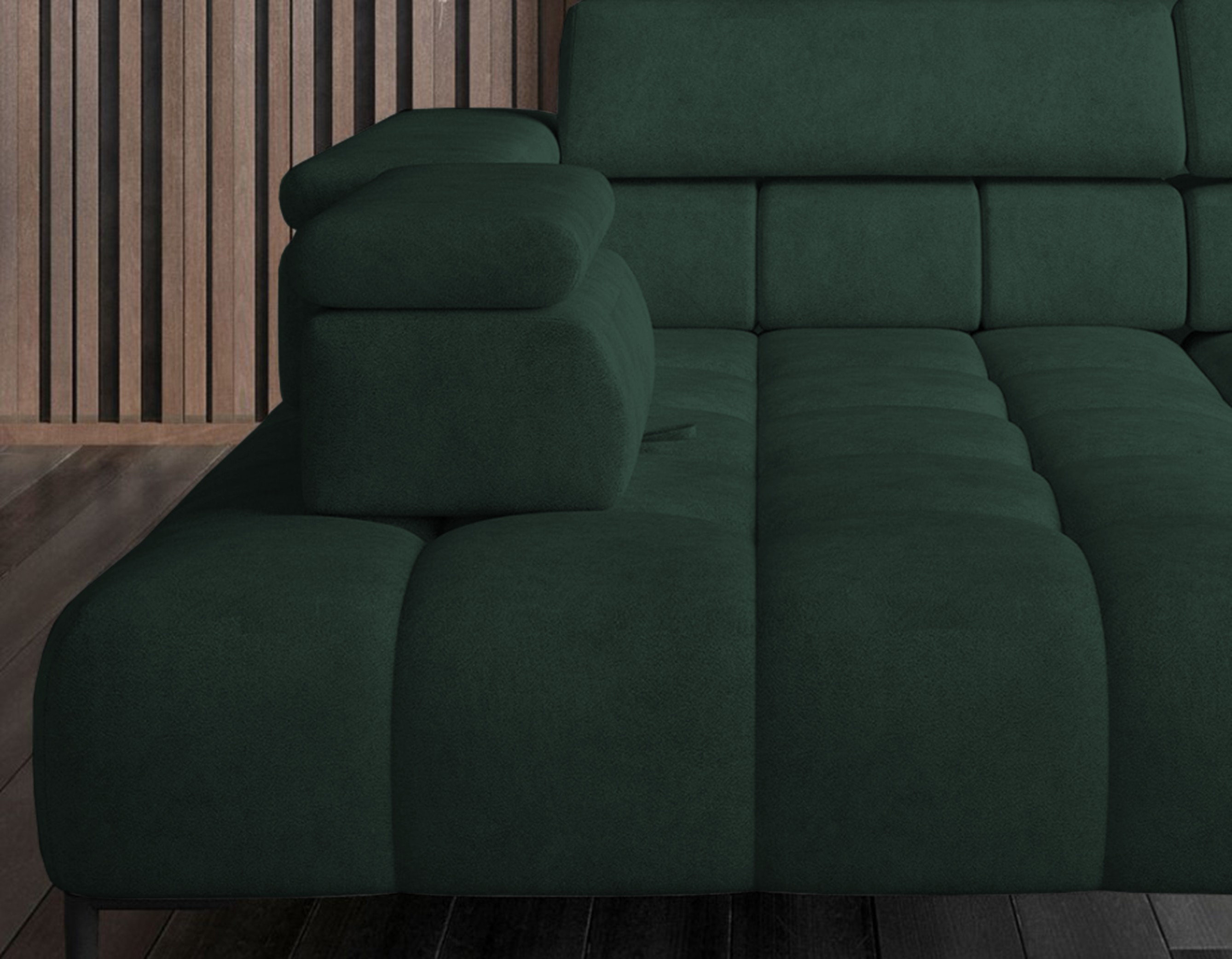 Dodatkowo narożnik wyposażony jest w przesuwne oparcie oraz 6 regulowanych zagłówków z możliwością blokady w dowolnej pozycji.
