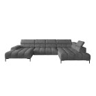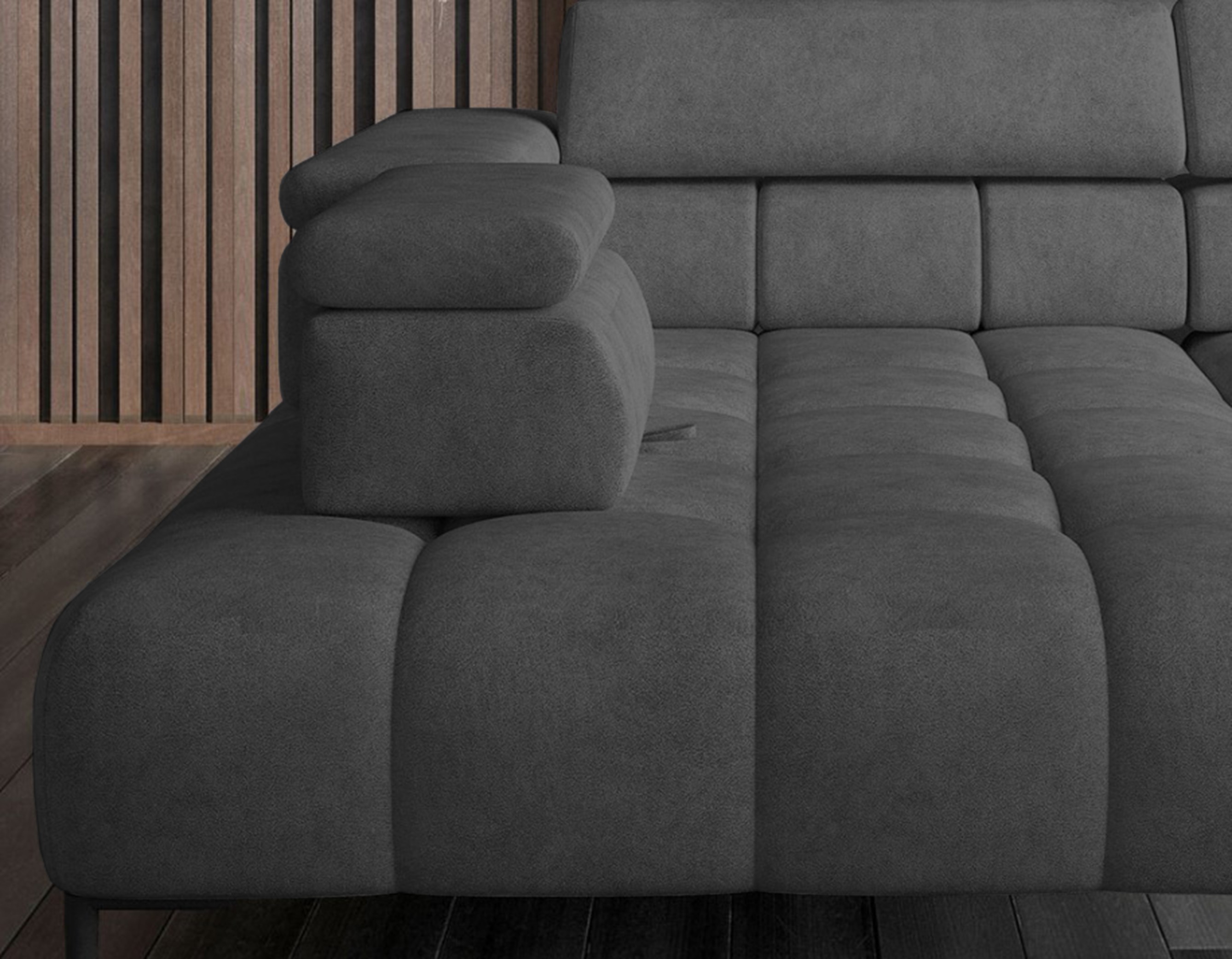 Dodatkowo narożnik wyposażony jest w przesuwne oparcie oraz 6 regulowanych zagłówków z możliwością blokady w dowolnej pozycji.