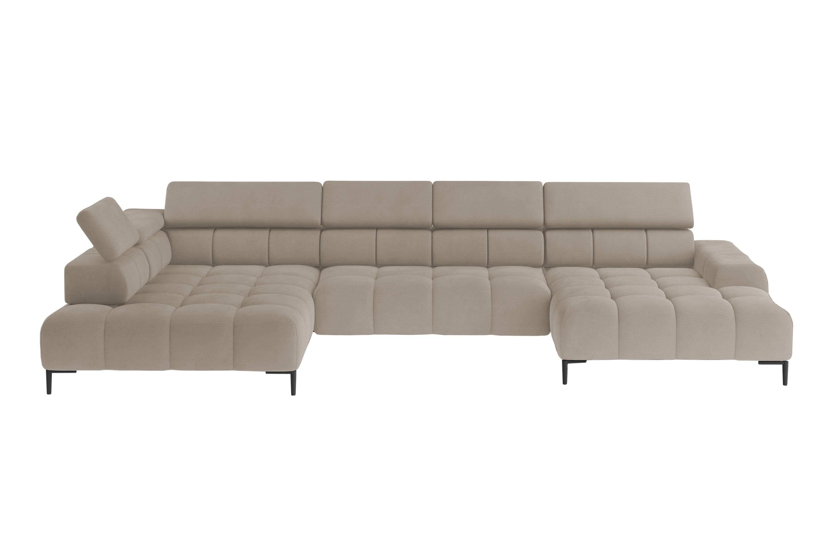 Dodatkowo narożnik wyposażony jest w przesuwne oparcie oraz 6 regulowanych zagłówków z możliwością blokady w dowolnej pozycji.