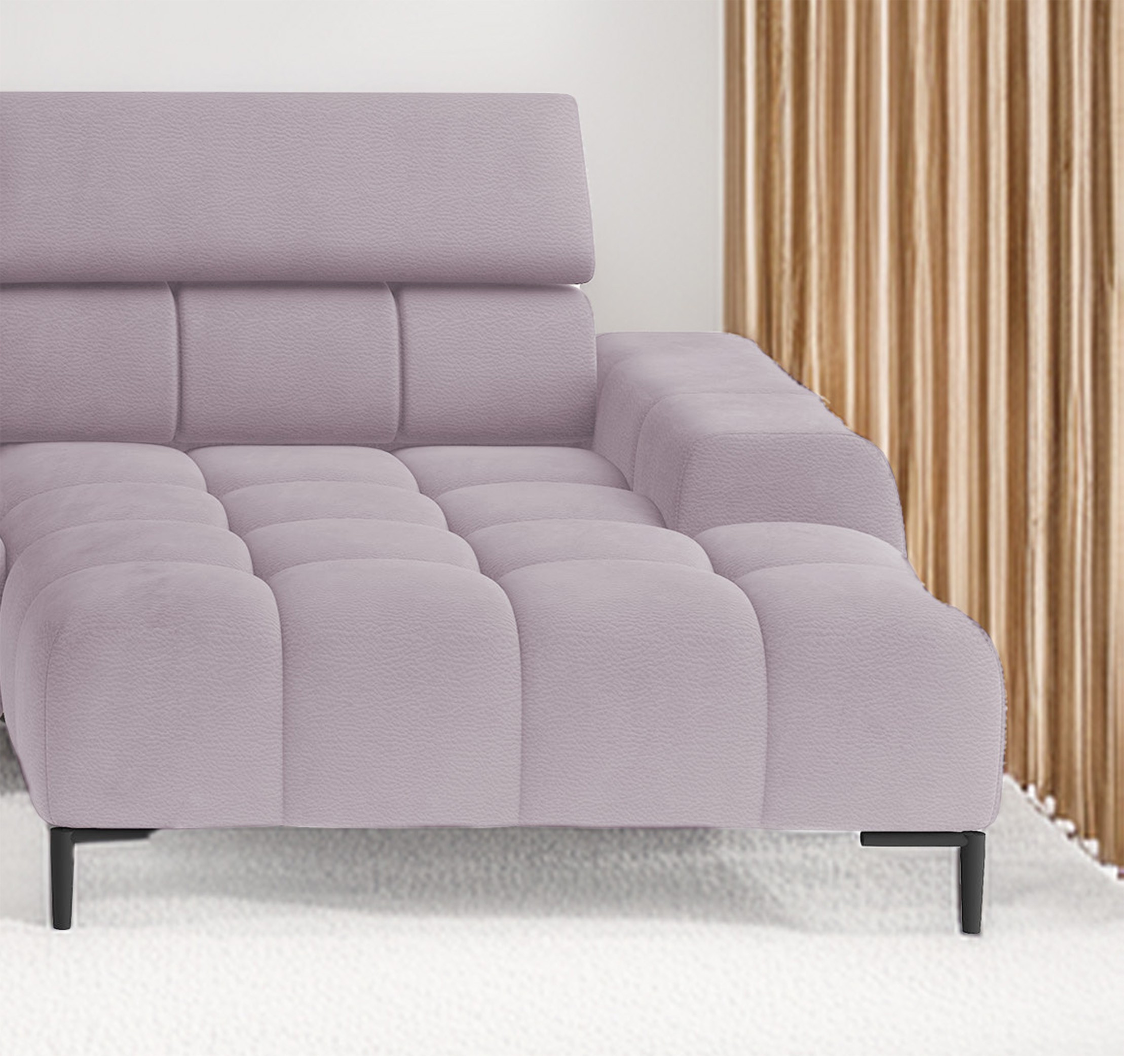 Dodatkowo narożnik wyposażony jest w przesuwne oparcie oraz 6 regulowanych zagłówków z możliwością blokady w dowolnej pozycji.