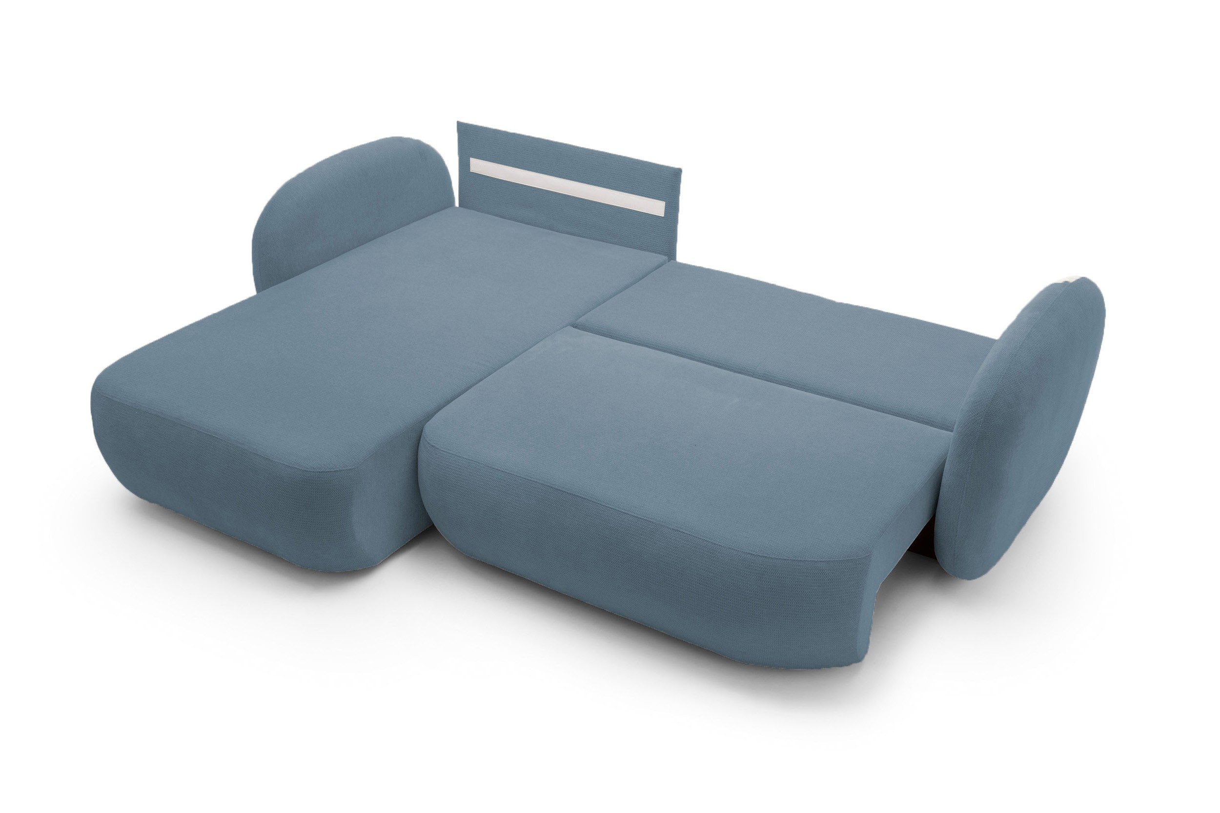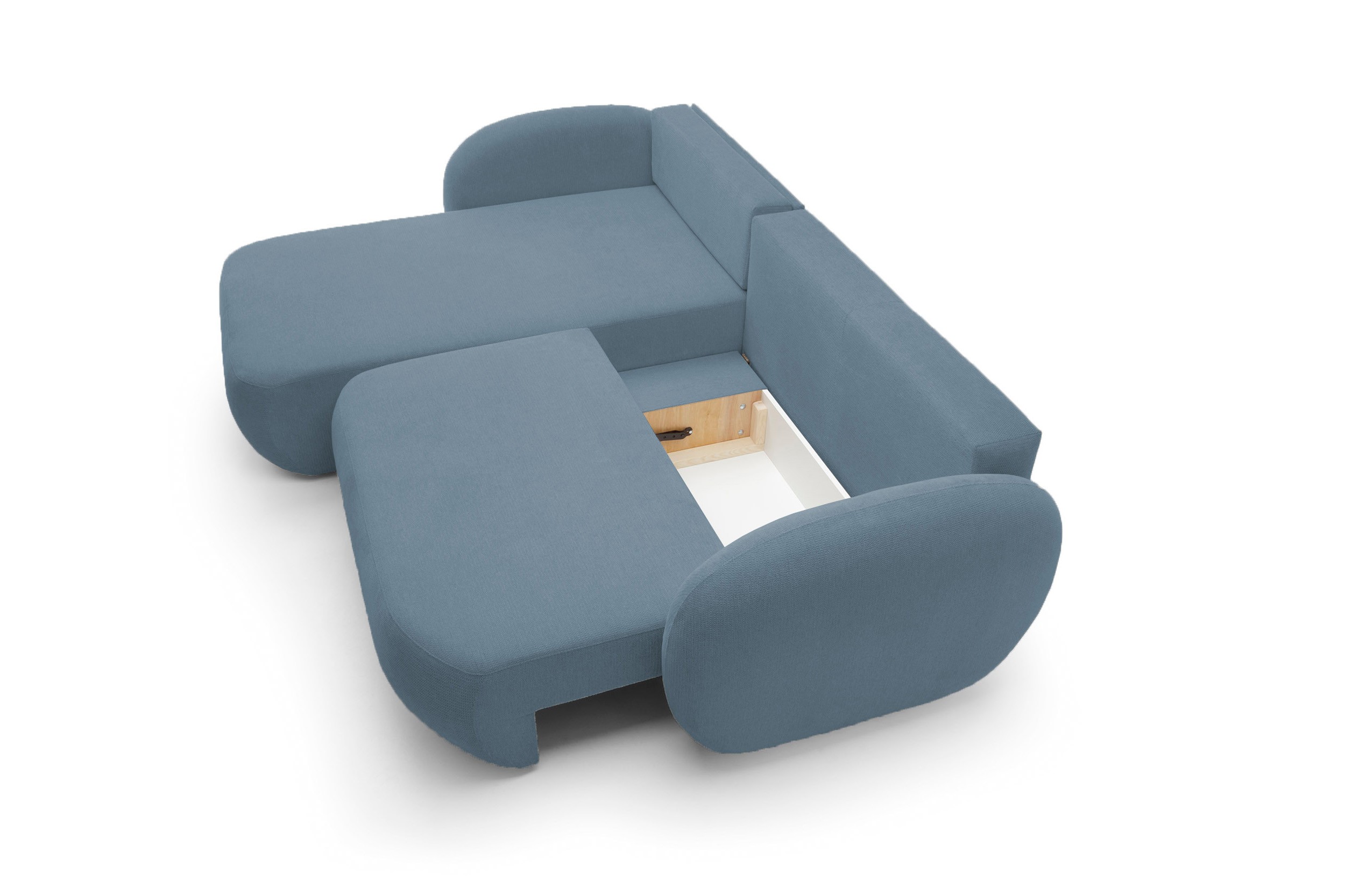 Narożnik OLIO to elegancki i funkcjonalny mebel, idealny do nowoczesnych wnętrz. Wyposażony w pojemnik na pościel, który ułatwia przechowywanie i organizację.