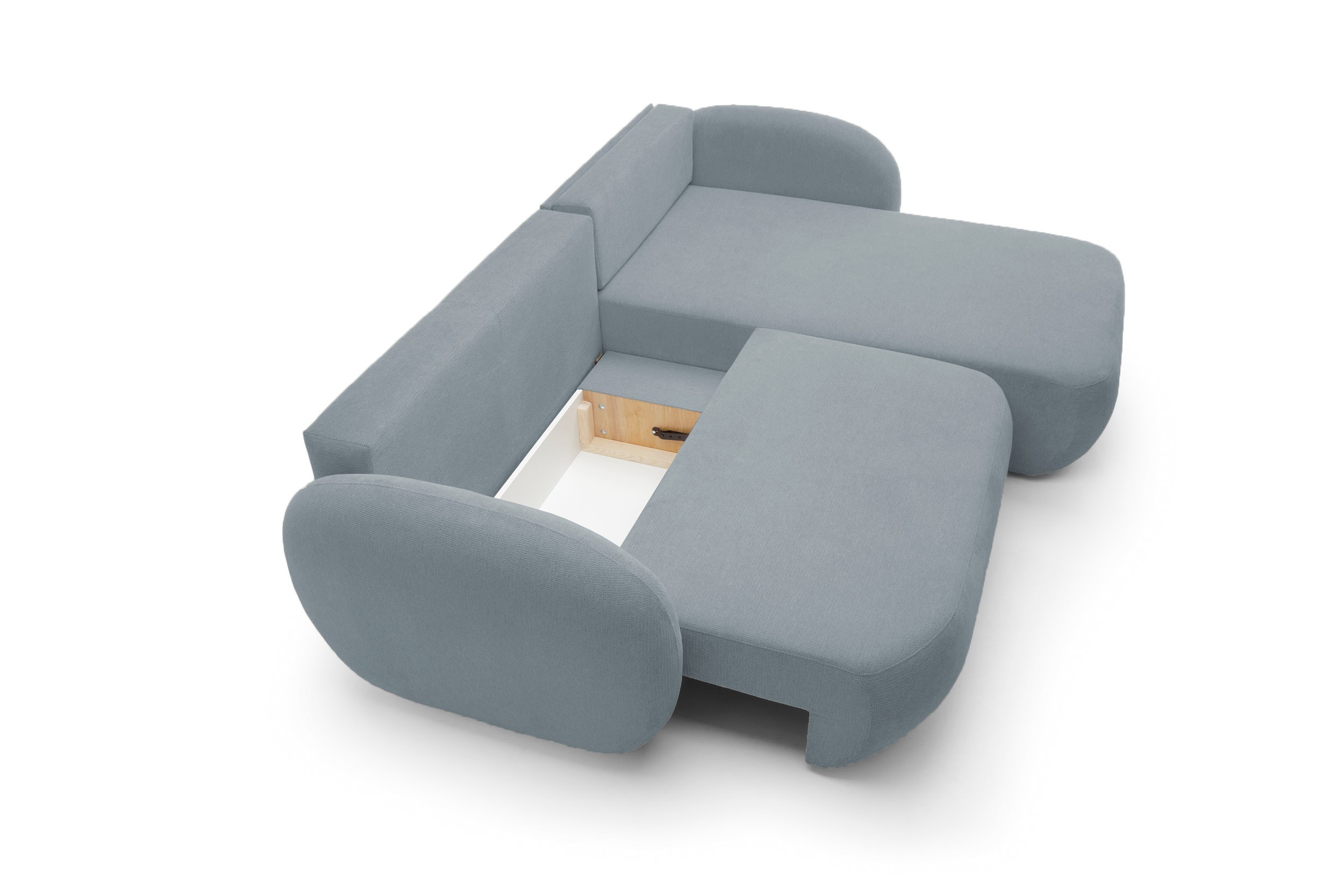 Narożnik OLIO to elegancki i funkcjonalny mebel, idealny do nowoczesnych wnętrz. Wyposażony w pojemnik na pościel, który ułatwia przechowywanie i organizację.