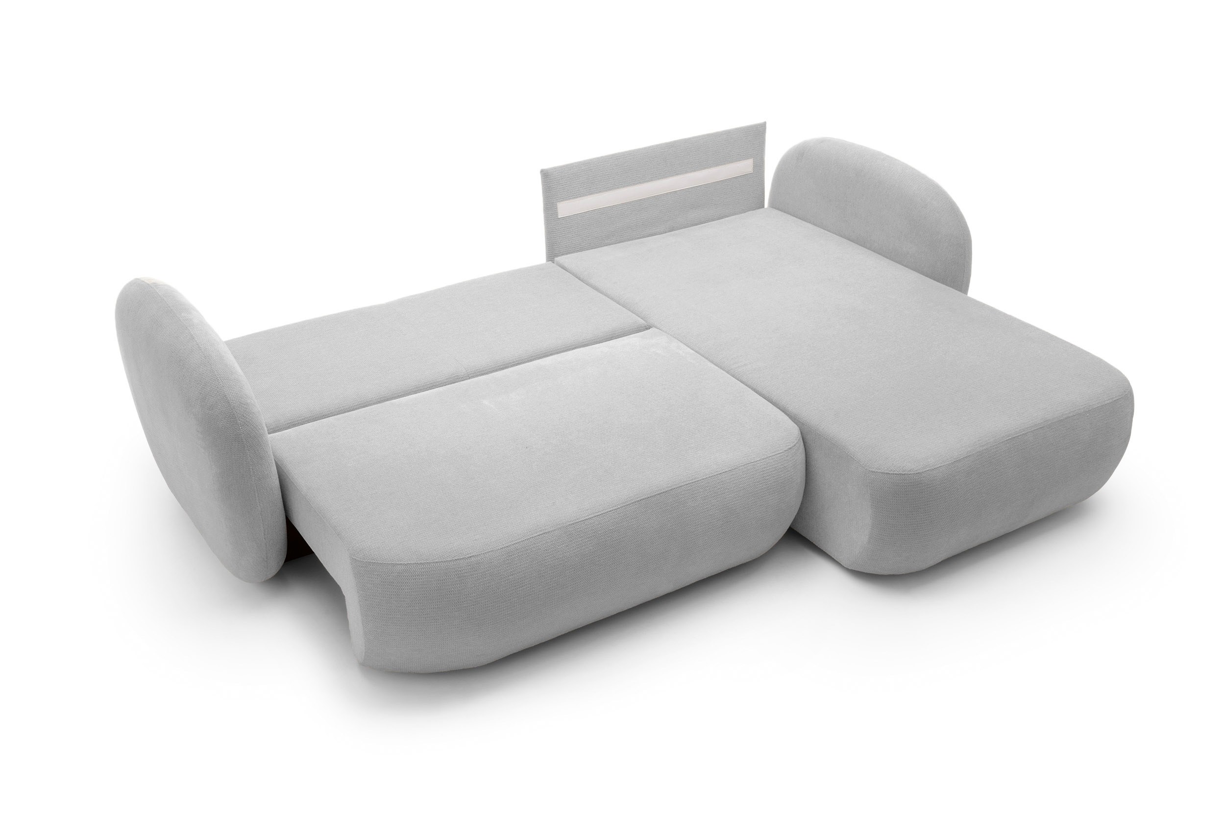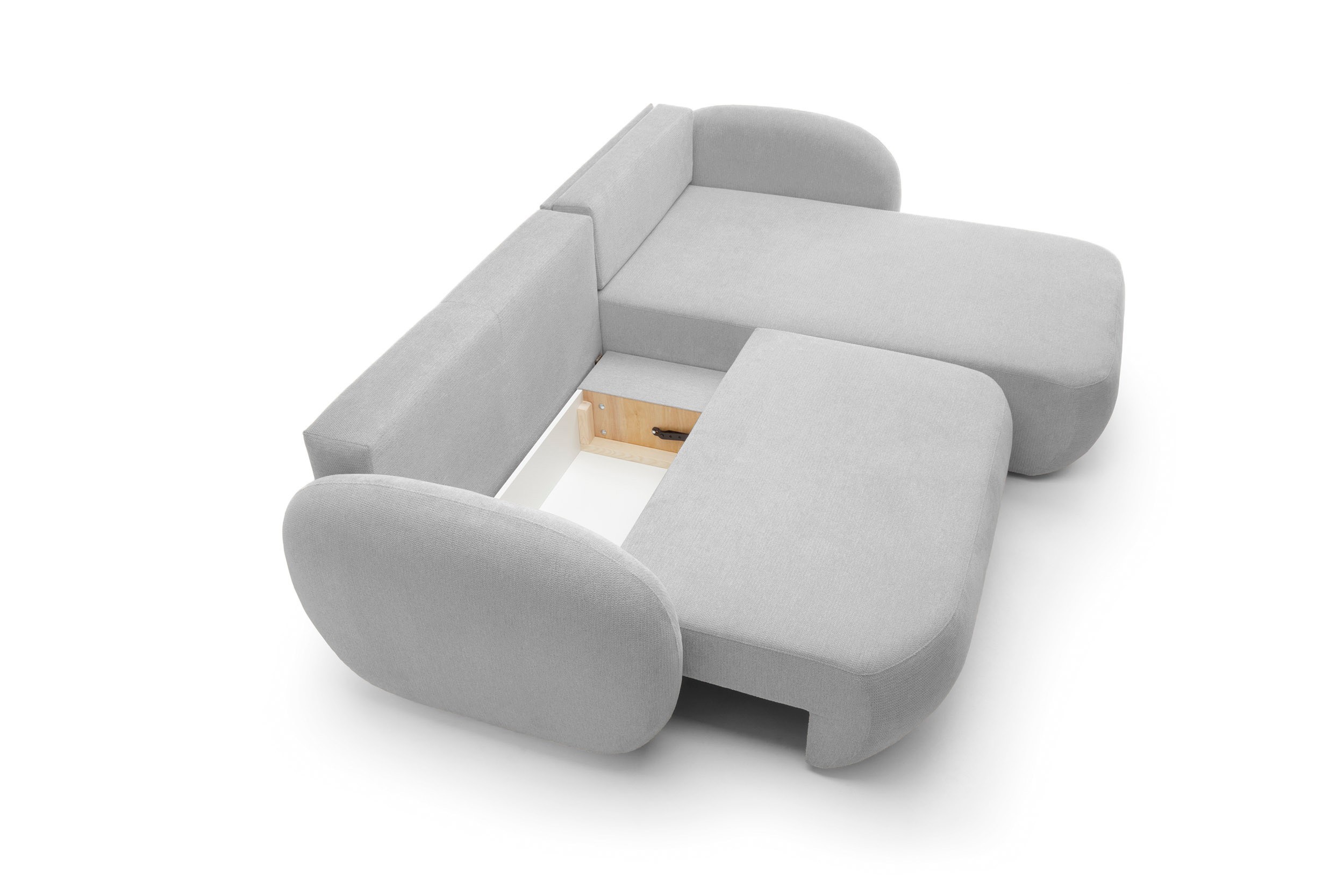 Narożnik OLIO to elegancki i funkcjonalny mebel, idealny do nowoczesnych wnętrz. Wyposażony w pojemnik na pościel, który ułatwia przechowywanie i organizację.
