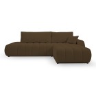 Funkcja spania umożliwia szybkie przekształcenie narożnika w wygodne miejsce do odpoczynku, a pojemnik na pościel pozwala na praktyczne przechowywanie kołder i poduszek.