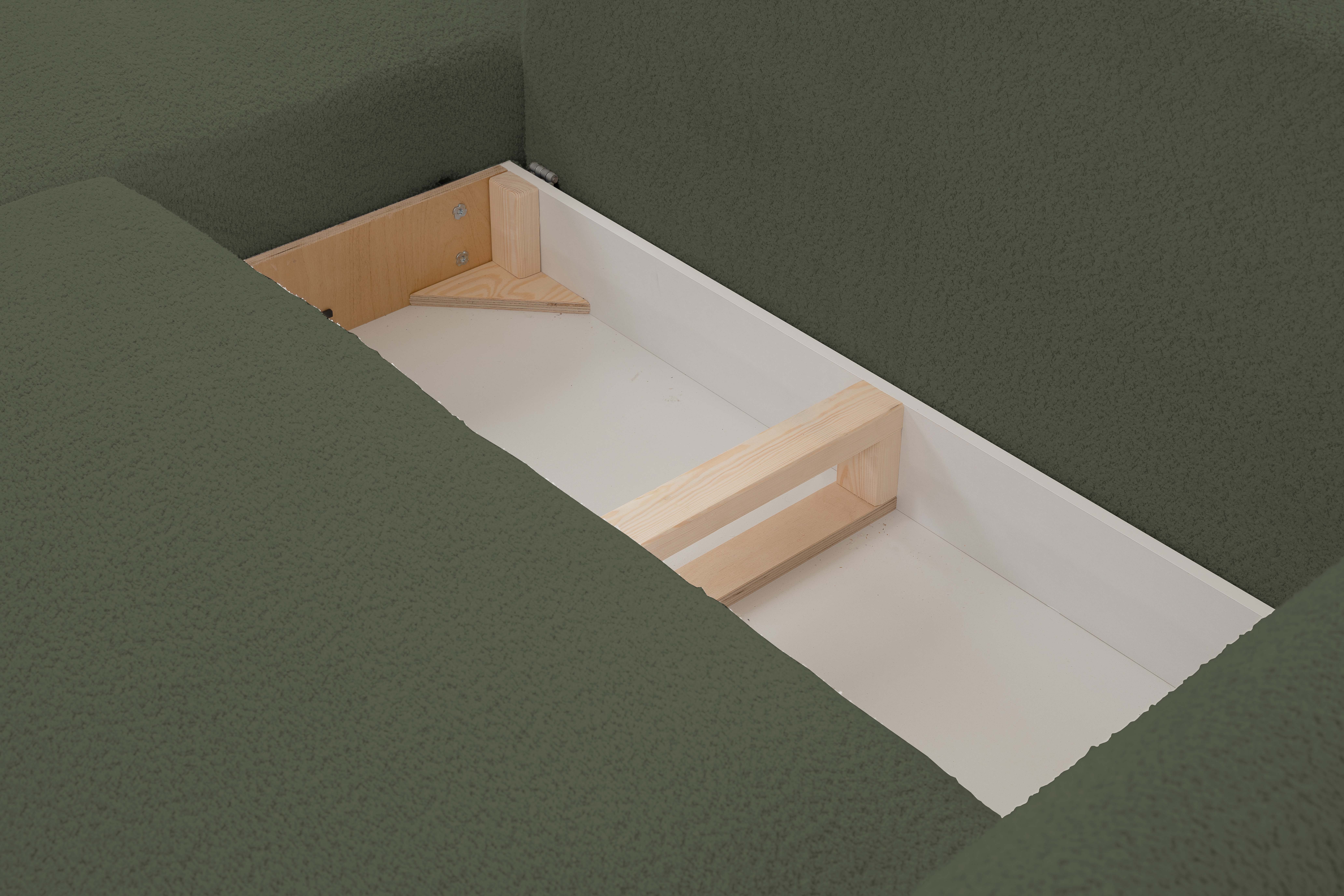 Wbudowany pojemnik na pościel (118,6 x 67 x 25,5 cm) pozwala na przechowywanie pościeli i utrzymanie porządku w pomieszczeniu.