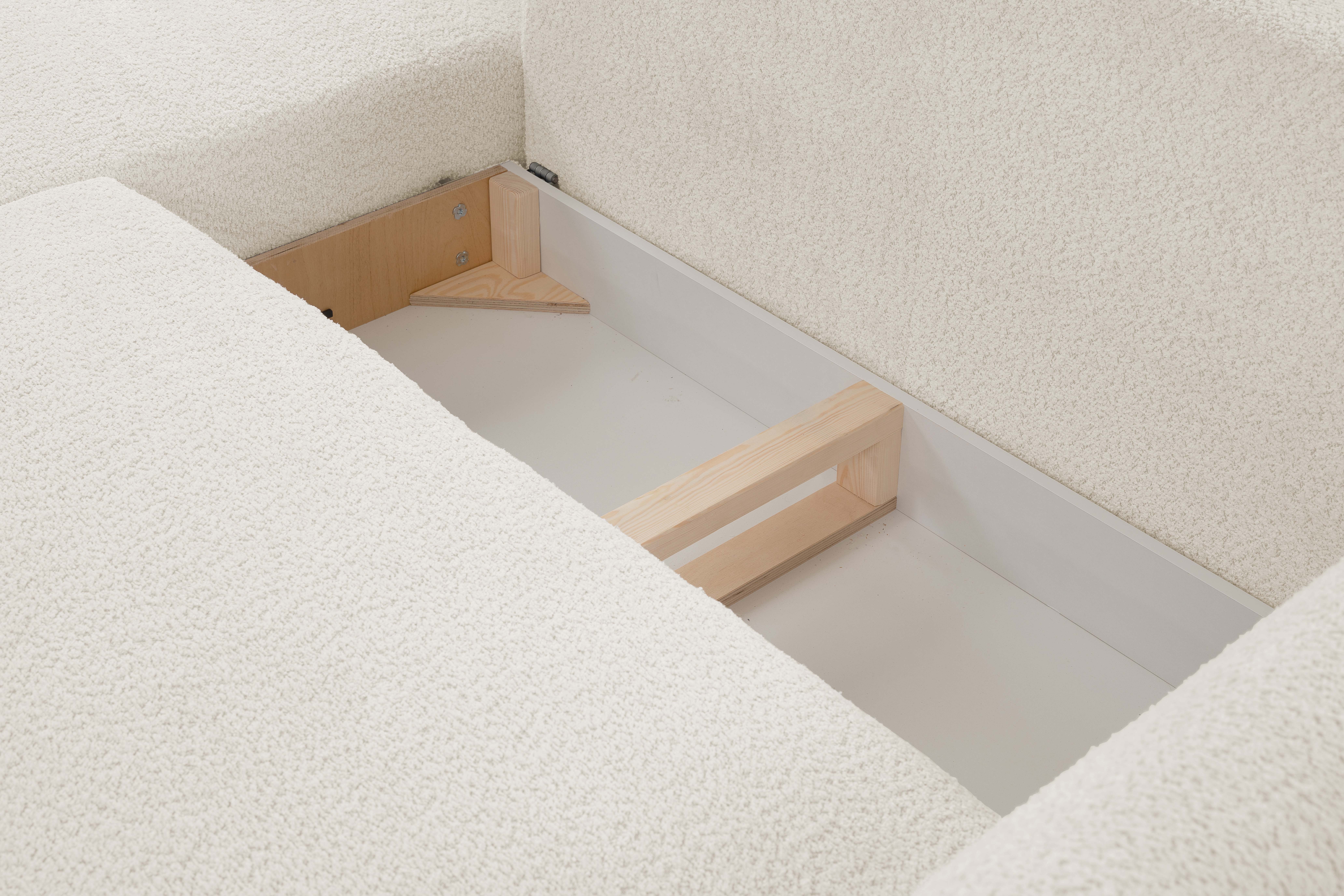 Wbudowany pojemnik na pościel (118,6 x 67 x 25,5 cm) pozwala na przechowywanie pościeli i utrzymanie porządku w pomieszczeniu.