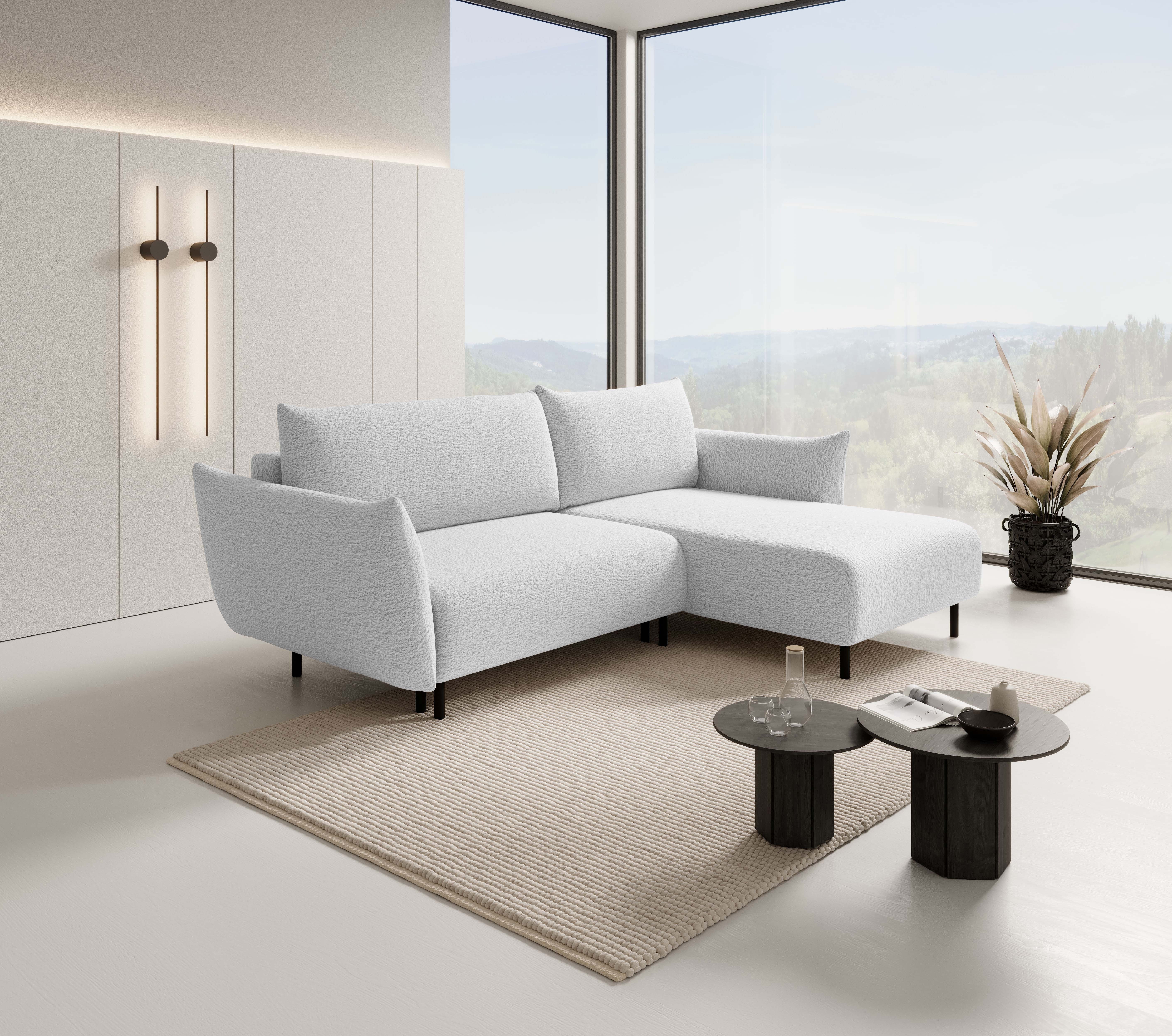 Narożnik ADEL oferuje praktyczną funkcję spania z powierzchnią do spania o wymiarach 145 x 212 cm, zapewniając komfort zarówno w dzień, jak i w nocy.