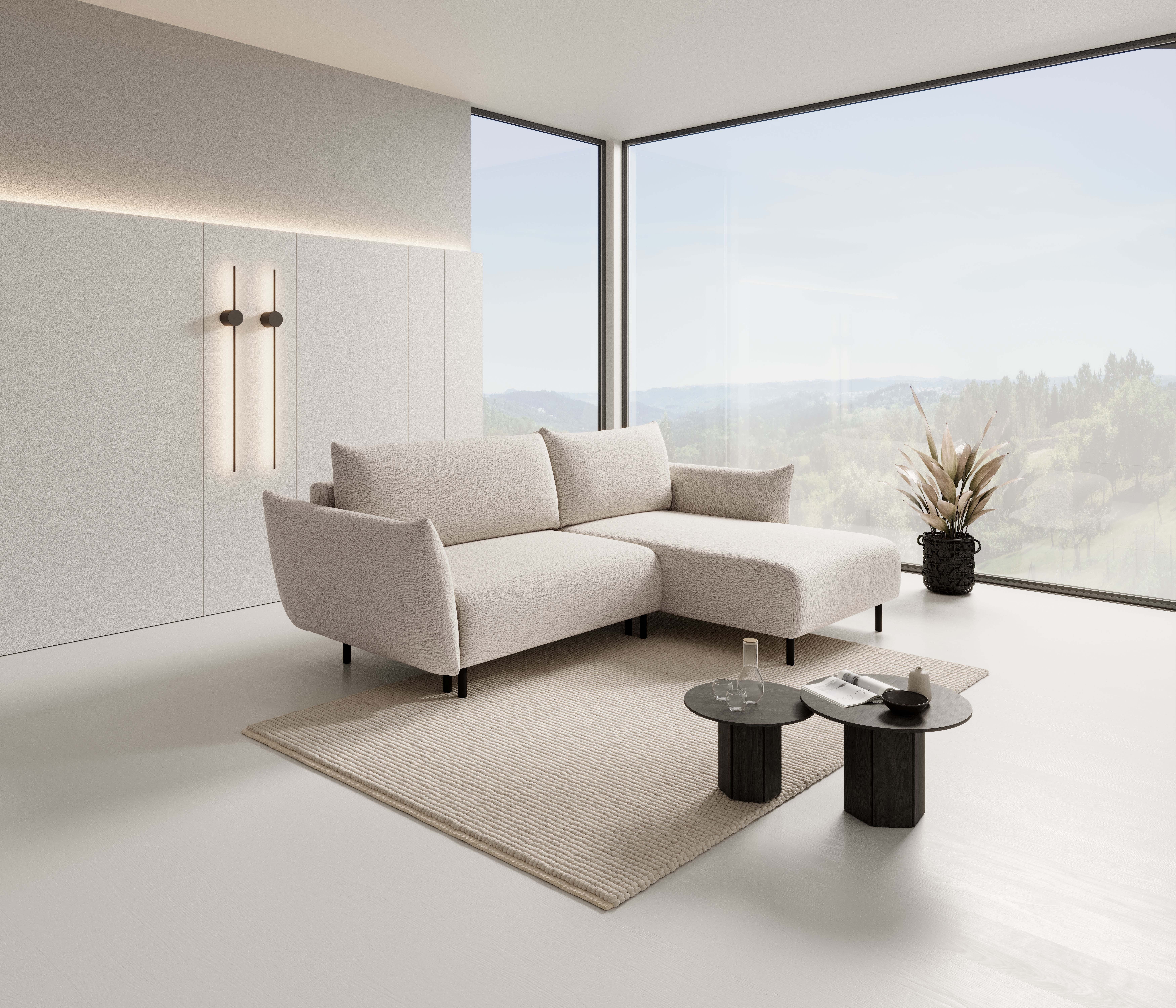 Narożnik ADEL wyróżnia się eleganckim designem, który idealnie pasuje zarówno do nowoczesnych, jak i klasycznych wnętrz. Dzięki elastycznej konstrukcji sofa może być aranżowana według potrzeb, co czyni ją doskonałym rozwiązaniem do każdego salonu.