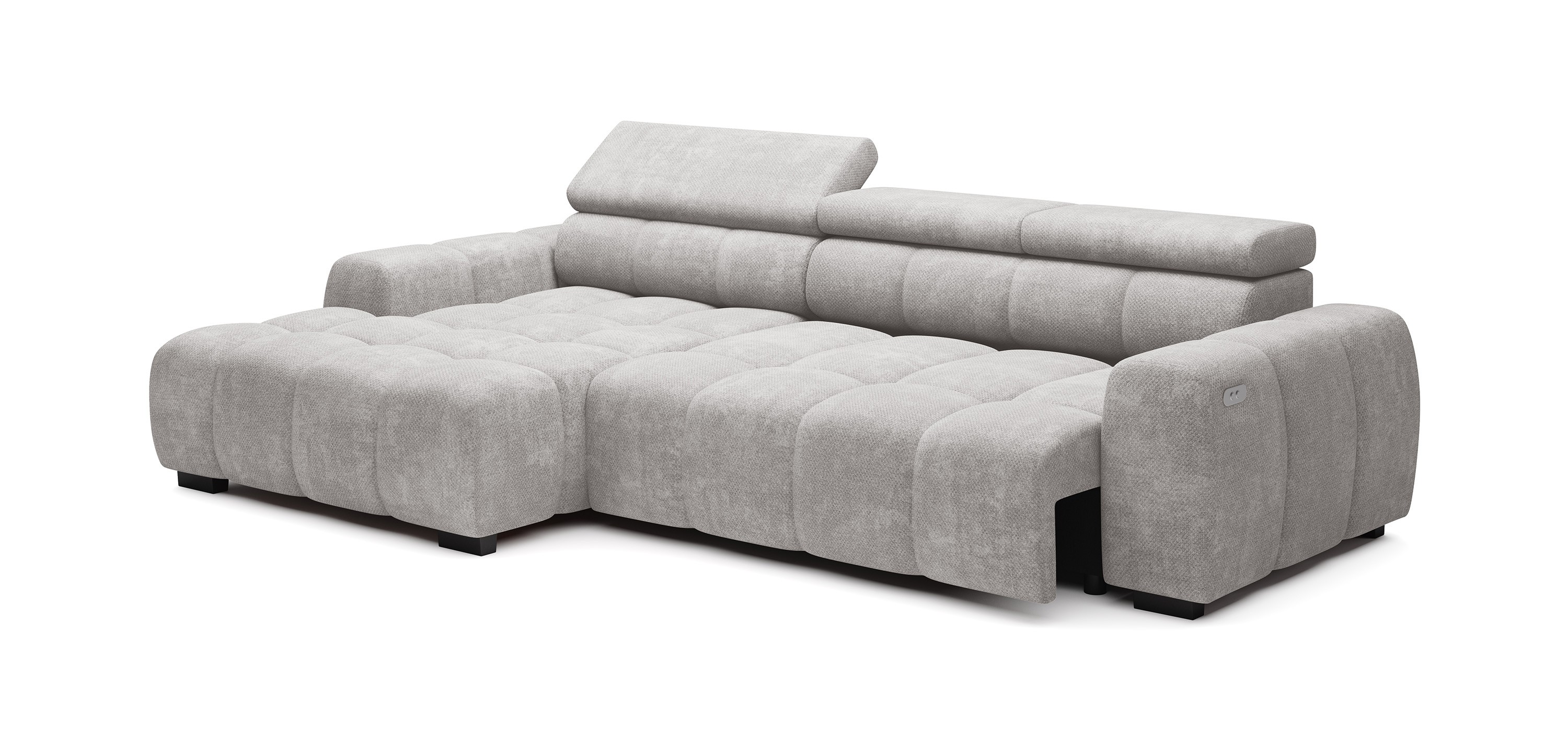 Wyposażony w elektrycznie wysuwane siedzisko (do 27 cm), OMBO oferuje wygodną przestrzeń do wypoczynku oraz praktyczną funkcję spania na co dzień.