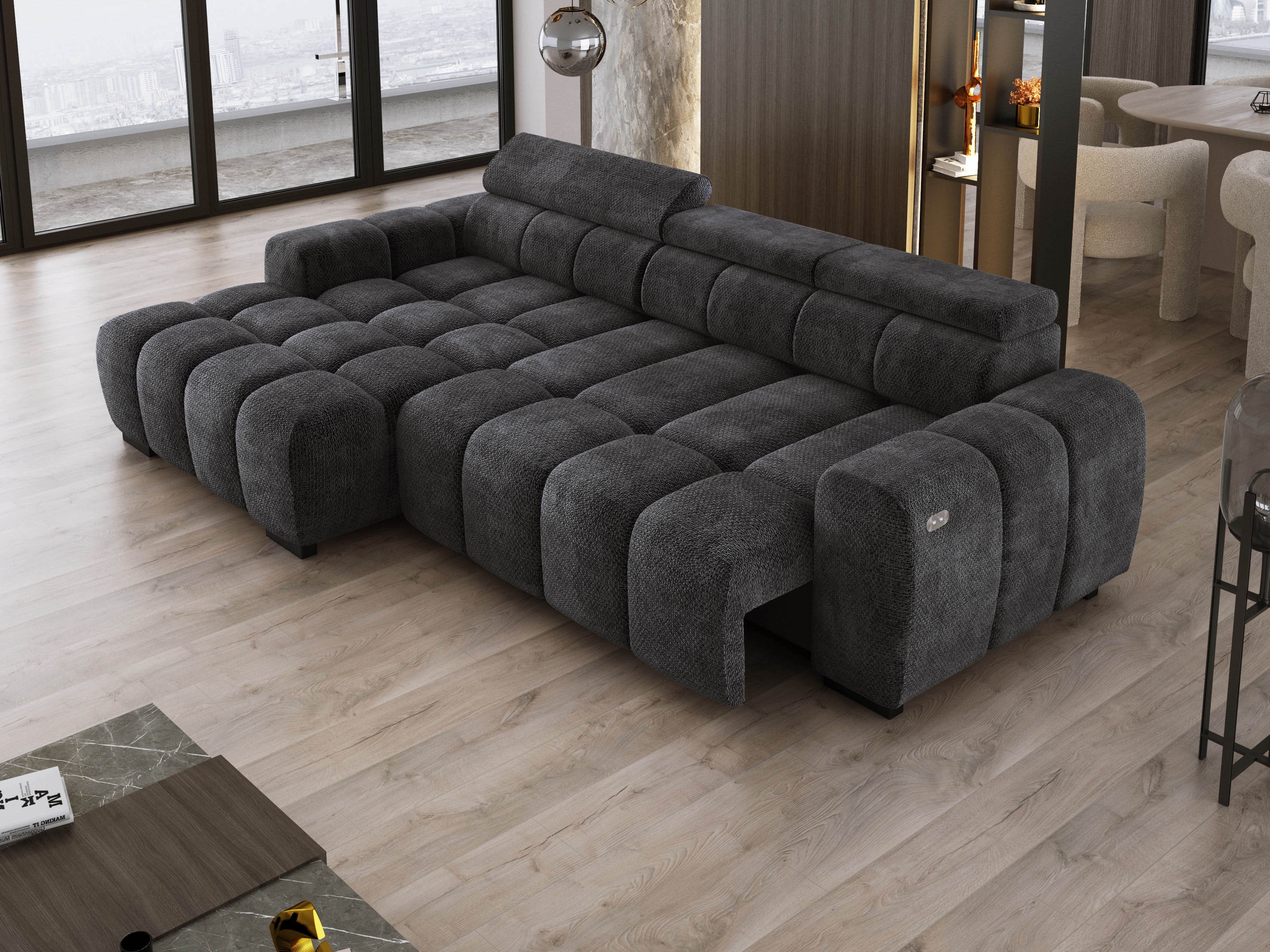 Wyposażony w elektrycznie wysuwane siedzisko (do 27 cm), OMBO oferuje wygodną przestrzeń do wypoczynku oraz praktyczną funkcję spania na co dzień.