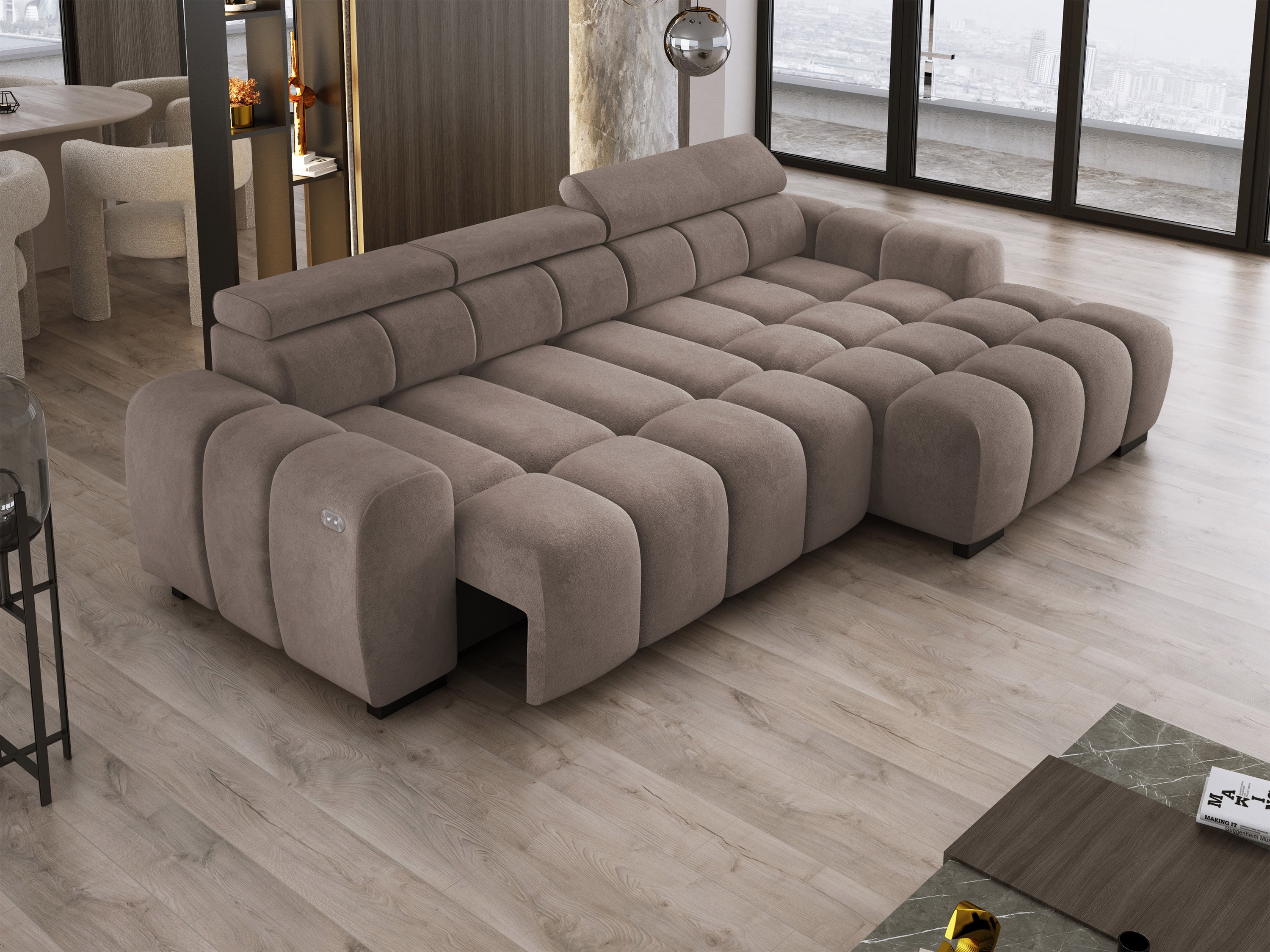 Wyposażony w elektrycznie wysuwane siedzisko (do 27 cm), OMBO oferuje wygodną przestrzeń do wypoczynku oraz praktyczną funkcję spania na co dzień.