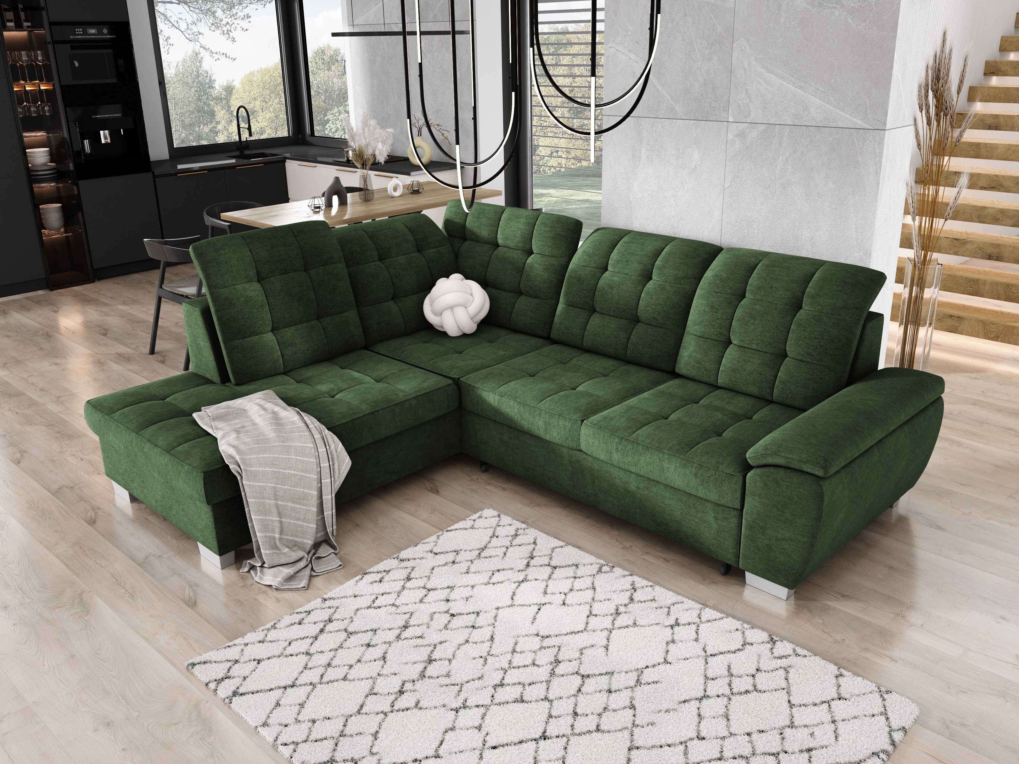 Funkcja spania typu Delfin pozwala w łatwy sposób przekształcić narożnik w pełnowymiarowe łóżko – idealne na niespodziewane wizyty gości.