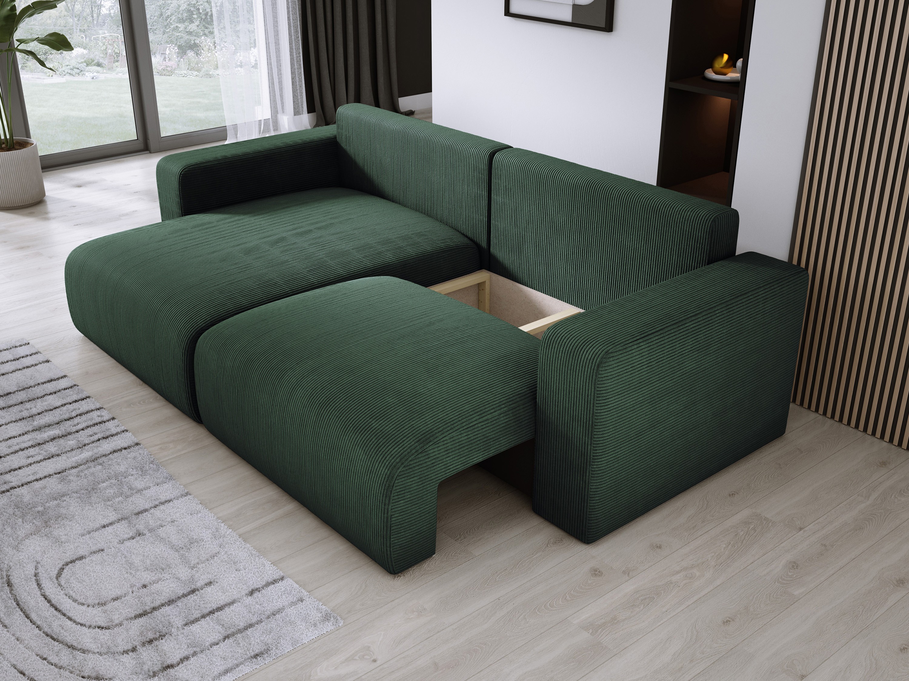 Wyposażony w funkcję spania i przestronny pojemnik na pościel, CARL doskonale sprawdzi się zarówno w codziennym użytkowaniu, jak i podczas okazjonalnych wizyt gości.