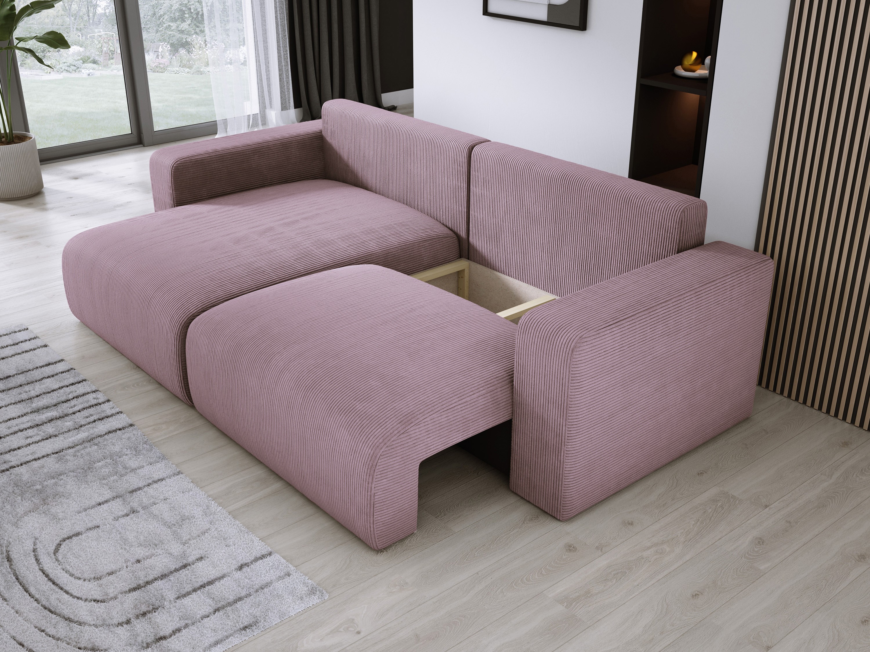 Dzięki kompaktowemu kształtowi litery L oraz możliwości uniwersalnego montażu otomany, narożnik z łatwością dopasuje się do każdego wnętrza – klasycznego, nowoczesnego czy skandynawskiego.