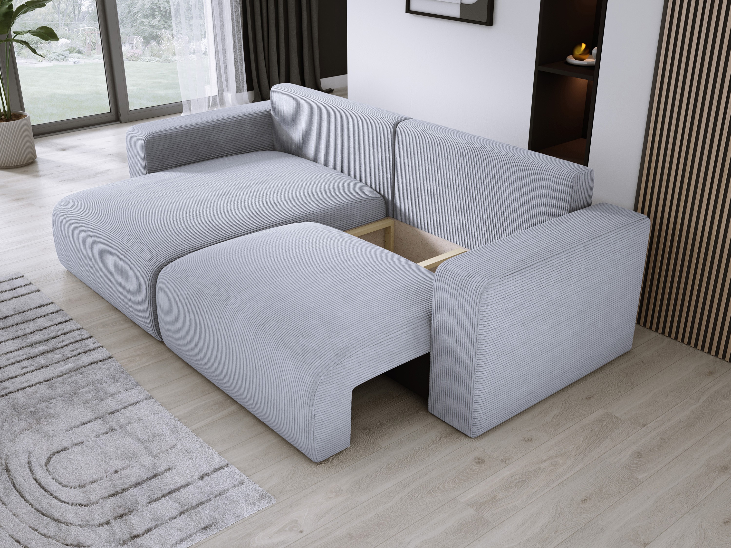 Wyposażony w funkcję spania i przestronny pojemnik na pościel, CARL doskonale sprawdzi się zarówno w codziennym użytkowaniu, jak i podczas okazjonalnych wizyt gości.