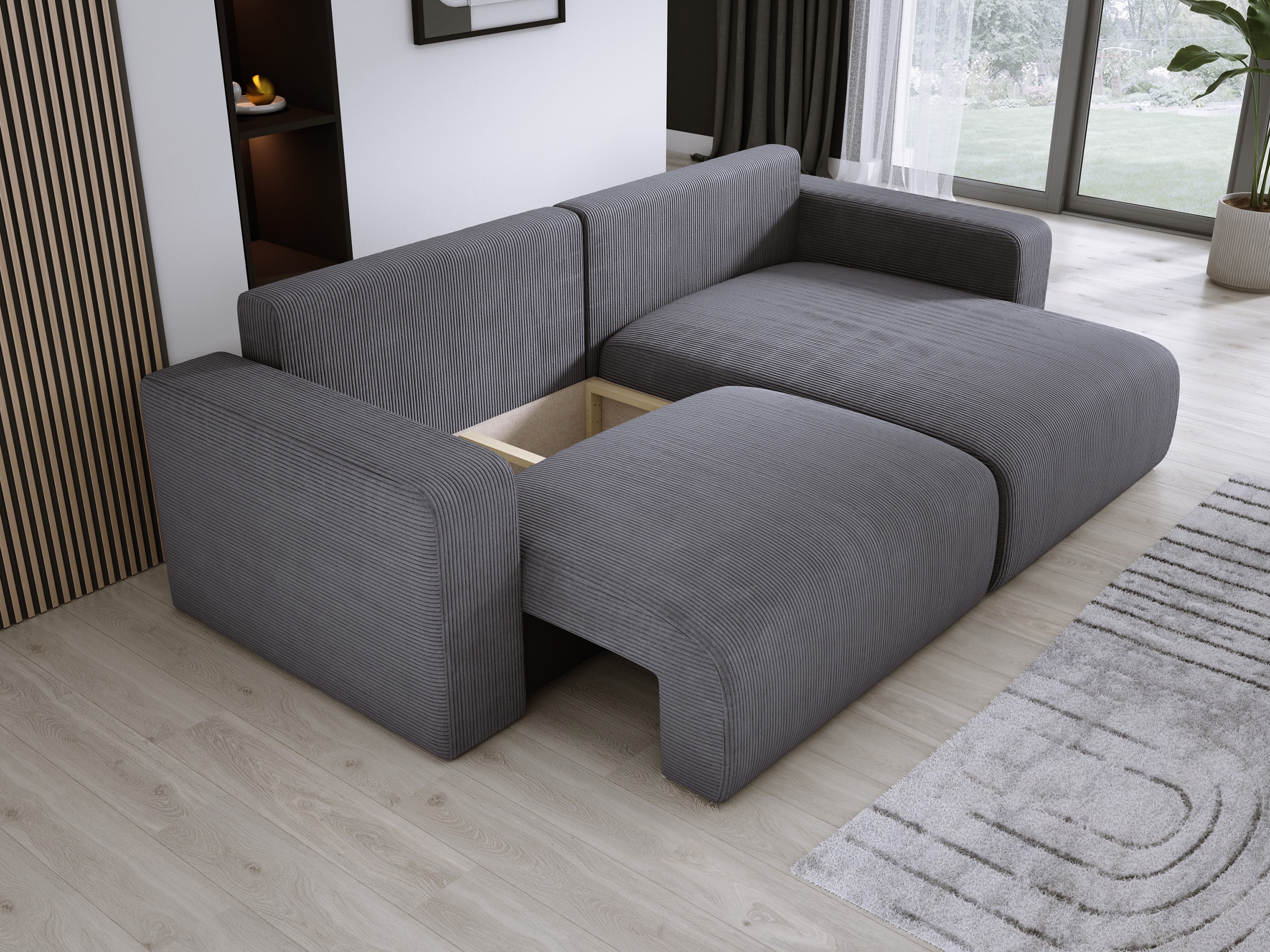 Wyposażony w funkcję spania i przestronny pojemnik na pościel, CARL doskonale sprawdzi się zarówno w codziennym użytkowaniu, jak i podczas okazjonalnych wizyt gości.