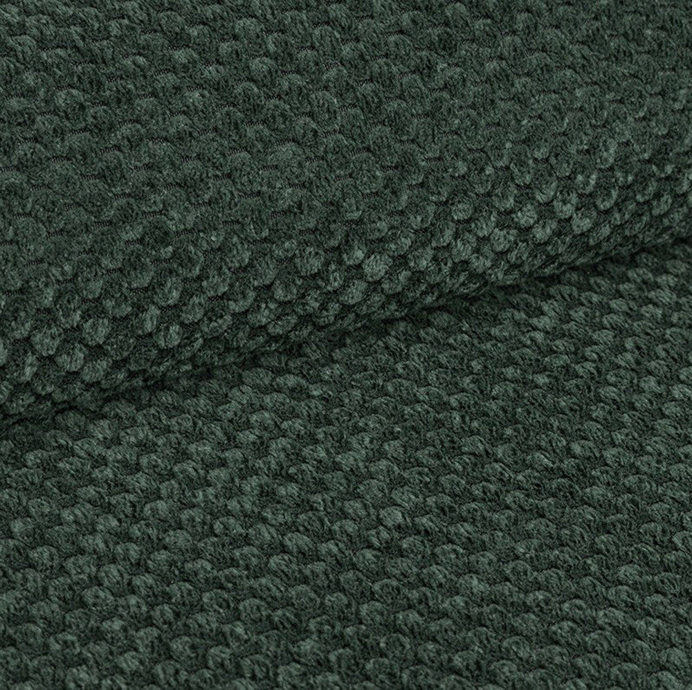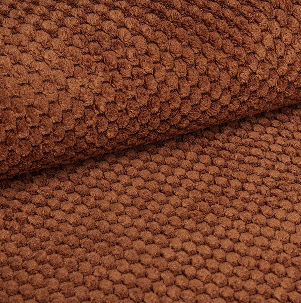 Curio to kolekcja tkanin dzianinowych o wyraźnym grubym splocie, który tworzy regularny wzór na powierzchni.