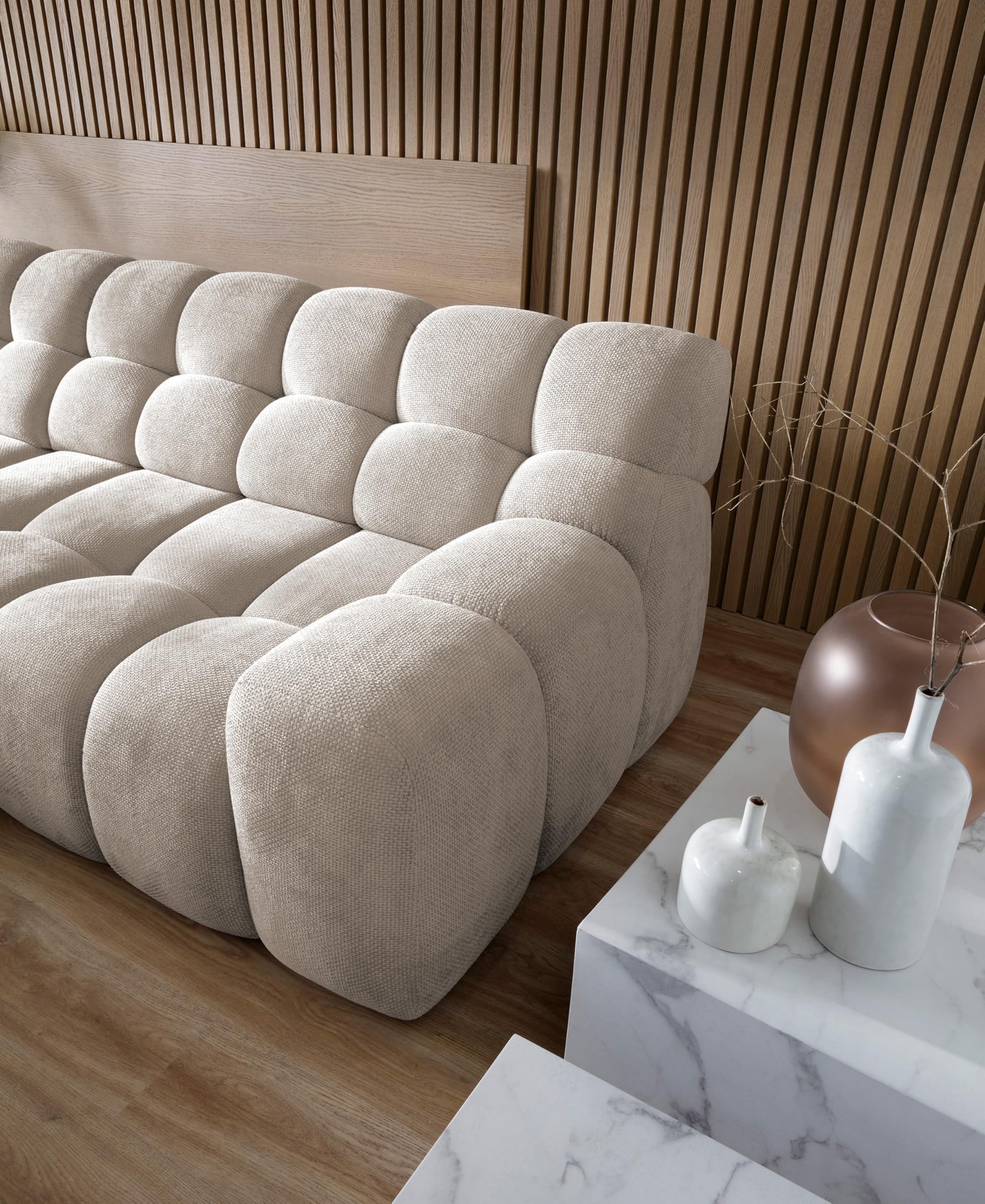 Zaprojektowany z myślą o wygodzie codziennego użytkowania, CAMPILE przyciąga uwagę subtelnymi pikowaniami i elegancką linią, które doskonale wpisują się w nowoczesne wnętrza.