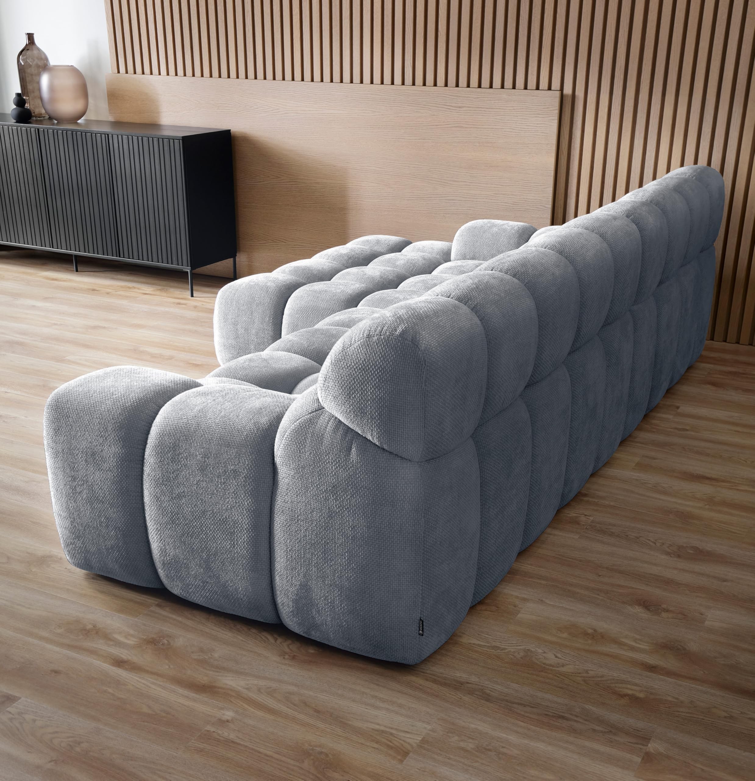 Mebel wolnostojący – tył narożnika CAMPILE obity jest tą samą tkaniną co front, dzięki czemu można go ustawić w dowolnym miejscu w salonie.