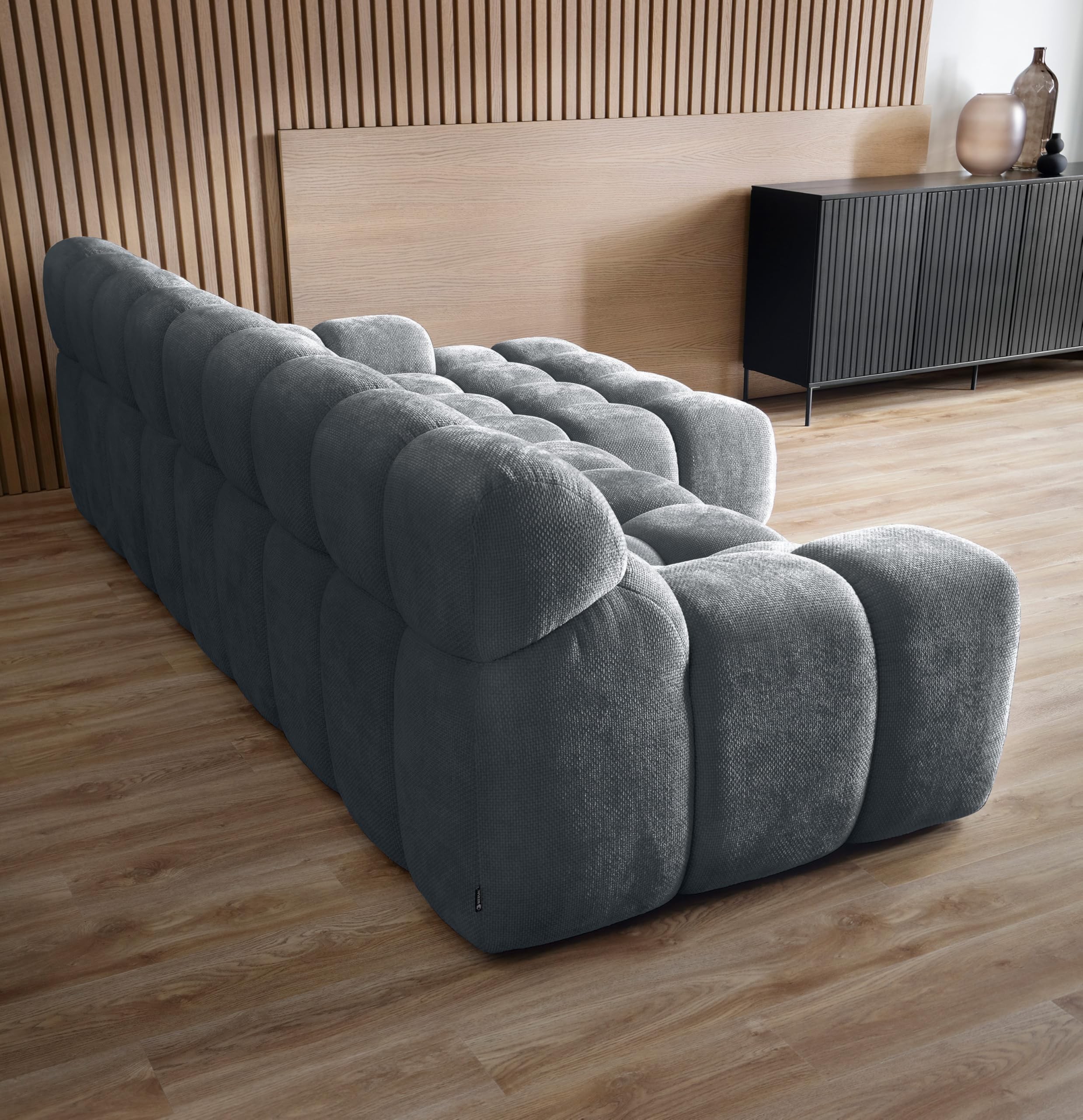 Mebel wolnostojący – tył narożnika CAMPILE obity jest tą samą tkaniną co front, dzięki czemu można go ustawić w dowolnym miejscu w salonie.
